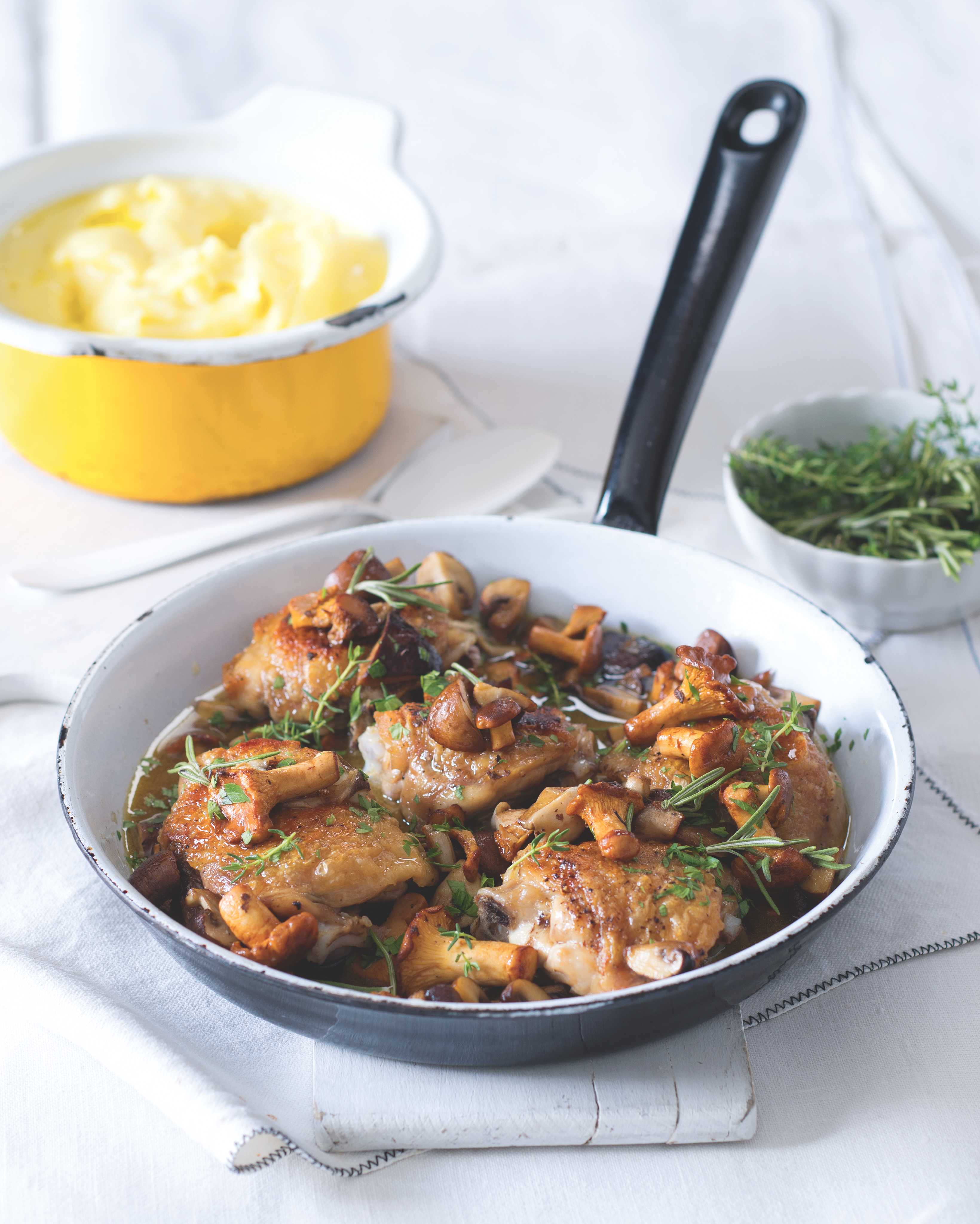 Kuře s bramborovou kaší ja klasika, která nikdy neomrzí a rozhodně stojí za to ji mít v repertoáru rychlých večeří. Tyto kuřecí stehna s houbami navíc zvládnete mnohem rychleji, než kdybyste připravovali klasické pečené kuře.