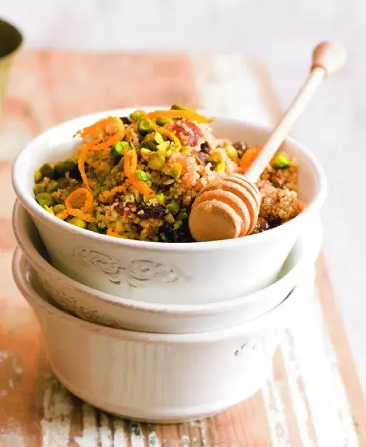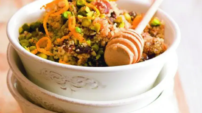 Mandle, datle, rozinky, čokoláda, akátový med a spousta dalších skvělých přísad činí z tohoto pokrmu opravdovou pochoutku.