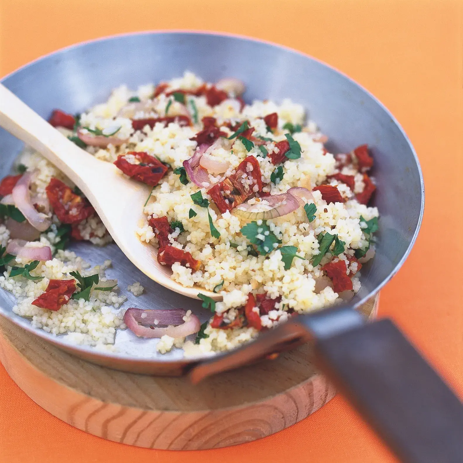 Díky praktickým rychlovarným verzím nebudete mít s kuskusem skoro žádnou práci. Jeho jemná chuť si přímo říká o výrazné přísady a my vsadili na kombinaci sušených rajčat a zázvoru. Kuskus se sušenými rajčaty je rychlé bezmasé jídlo, které máte do půl hodiny na stole.