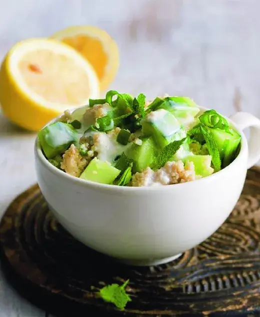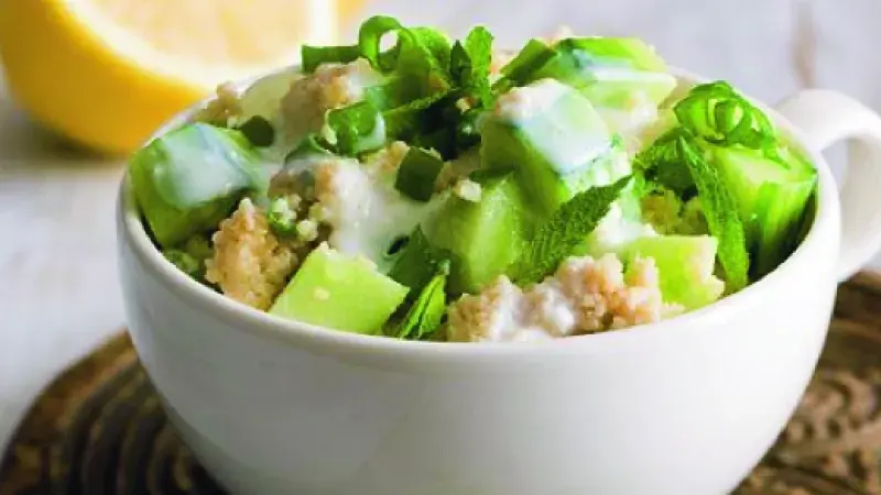 Osvěžující a zdravý salát s jarní cibulkou a výraznou mátou.