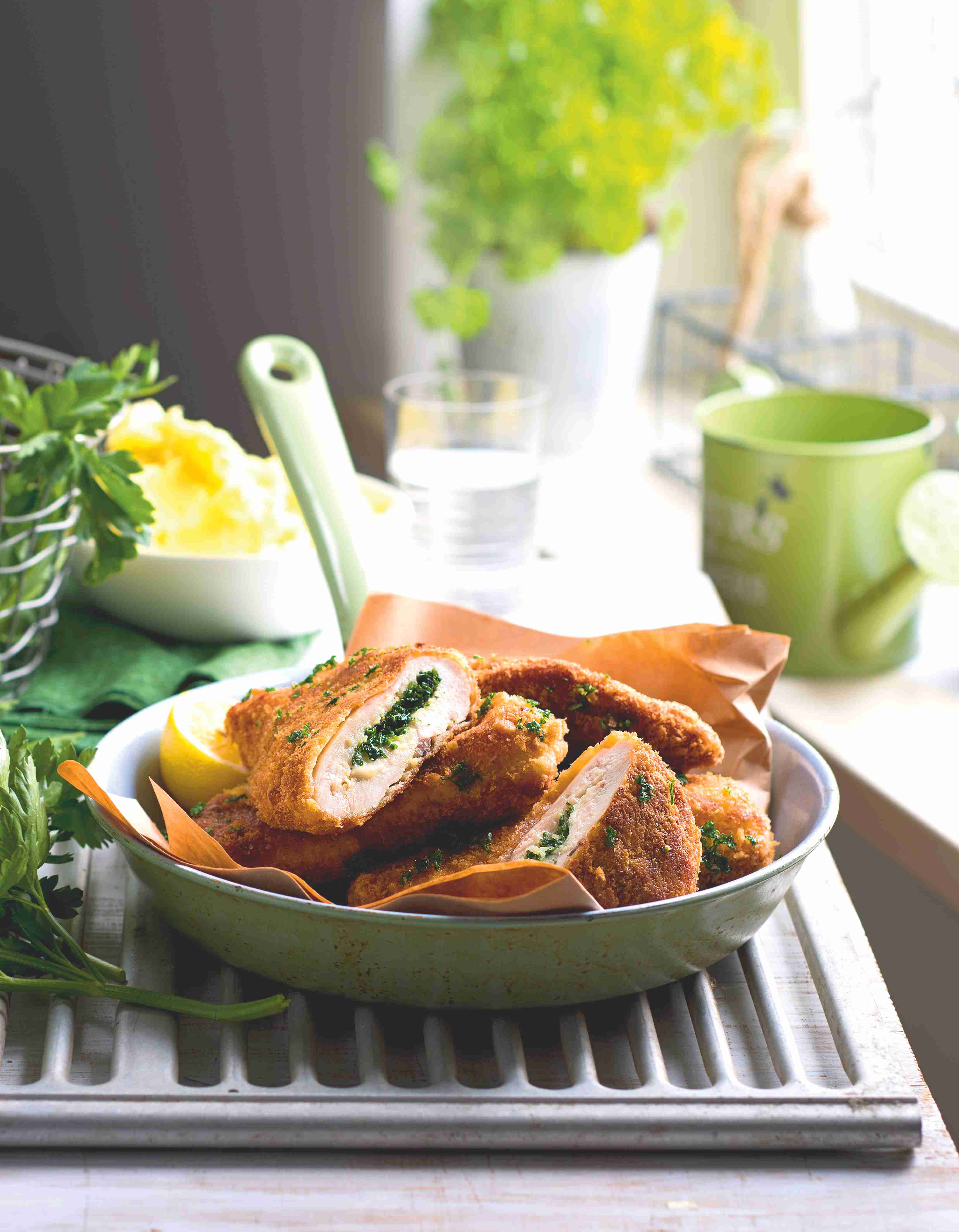 Řízky v luxusním provedení. Lahodné máslíčko skvěle ochutí jinak sušší kuřecí maso a strouhanka s petrželkou je voňavý bonus.