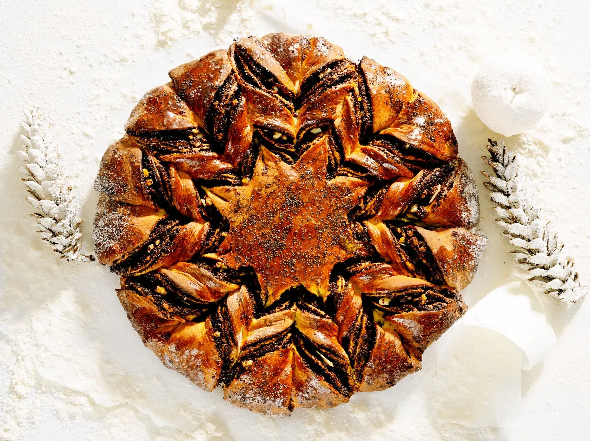 Efektní hvězda z nadýchaného kynutého těsta je plněná vláčnou makovou nádivkou. Tenhle nádherný koláč bude vskutku stylovou ozdobou svátečního stolu. Hvězdu jsme si vypůjčili v Polsku, kde makový závin patří k tradičním vánočním dezertům. Moučníky s mákem tam totiž symbolizují blahobyt a štěstí.