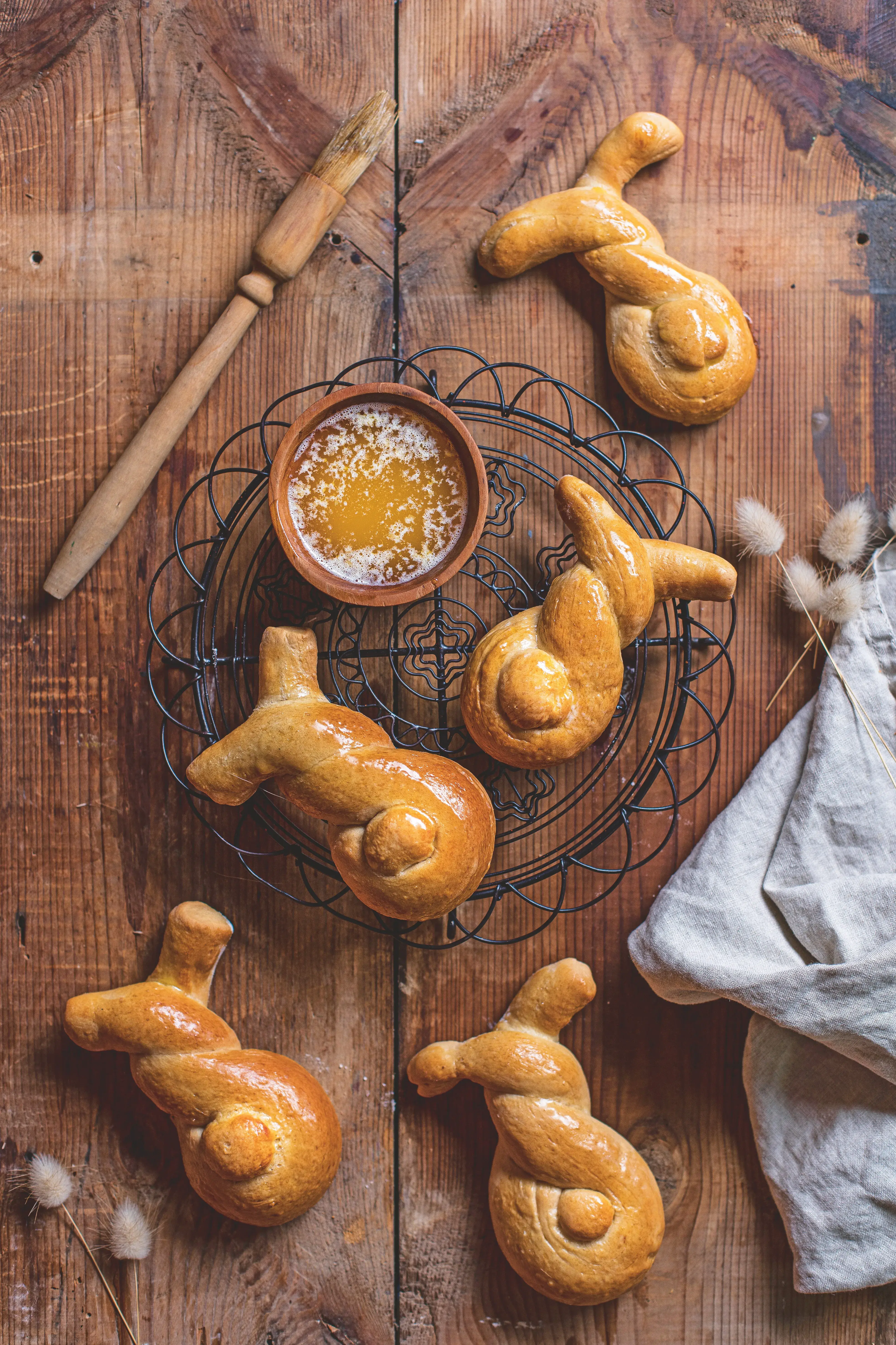 Roztomilé sladké housky ve tvaru velikonočního zajíčka budou skvělé ještě vlahé s máslem a medem nebo oblíbeným džemem. Kynutí zajíčci jsou také jako stvořené pro děti na svačinu.