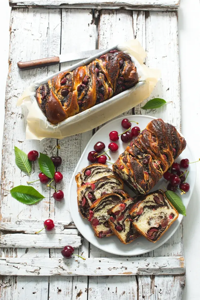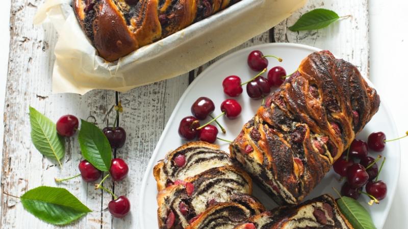 Ač se to na první pohled nemusí zdát, třešně a mák k sobě dokonale ladí. A když je společně zapletete do nadýchaného kynutého těsta? Hotová pohádka!