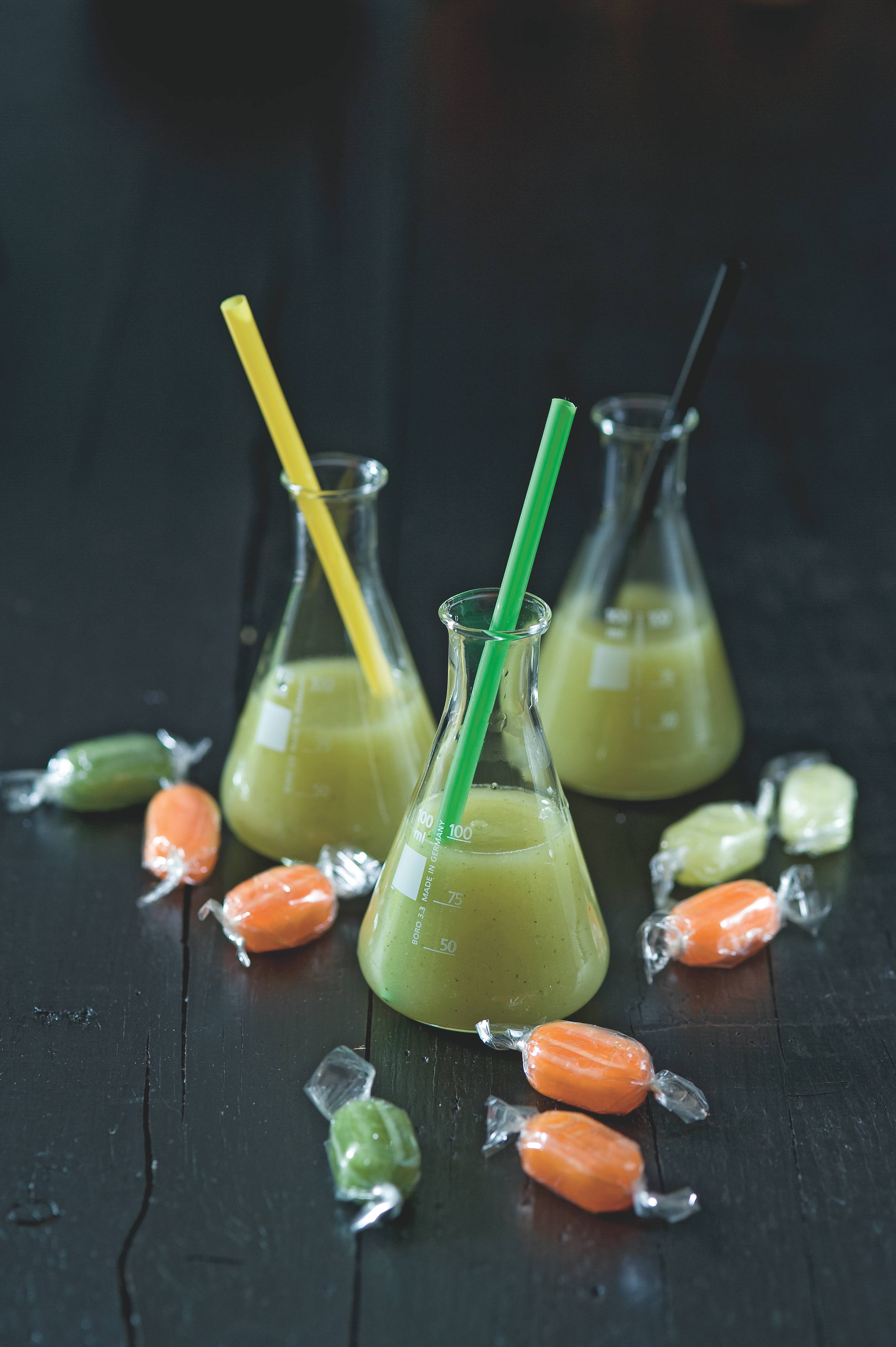 Do laboratorních lahviček můžete nalít cokoli, ale čím to bude mít jedovatější barvu, tím větší radost dětem uděláte.