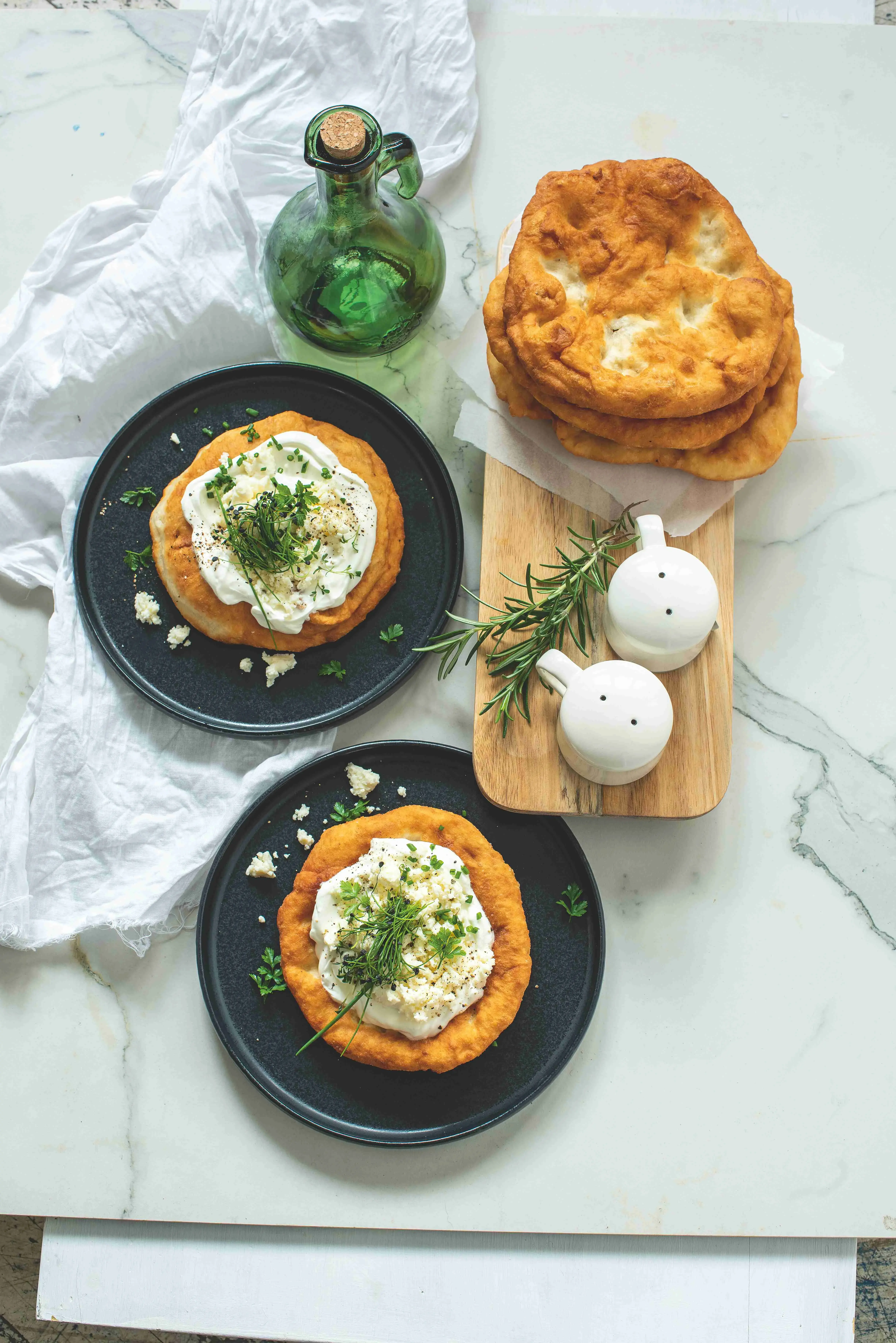 Langoš přesně zapadá do trendu comfort food, tedy jídla, které potěší, vzbuzuje emoce a vyvolává vzpomínky. Tentokrát jsme se tuto absolutní smaženou klasiku rozhodli podávat moderně – se zakysanou smetanou, brynzou a bylinkami. Pokud vás ovšem srdce (a chuťové buňky) tahnou k retru, zvolte kvalitní kečup, řízný česnek a roztékající se sýr! Recept na domácí langoše rozhodně svým blízkým připravte.