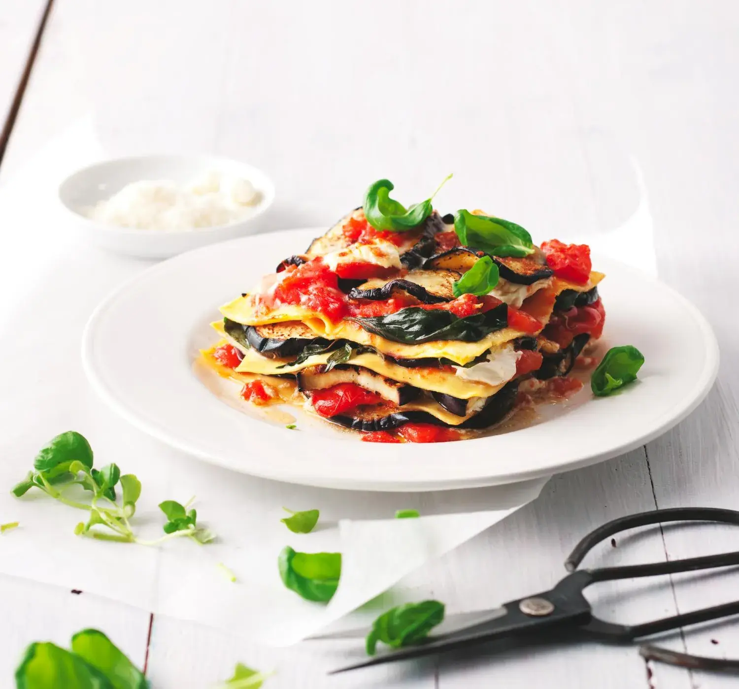 Lasagne s lilkem a čerstvými rajčaty jsou luxusní letní oběd nebo večeře. zpracujete do nich sezónní zeleninu a díky chybějícímu bešamelu nejsou tyto lasagne tolik pracné. Lilek před zapékáním opečte na oleji, získá lepší chuť.