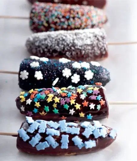 Podle kuchařky Receptíky pro kuchtíky se mají banány zmrazit, ale sníst je pochopitelně můžete hned, jak čokoláda ztuhne.