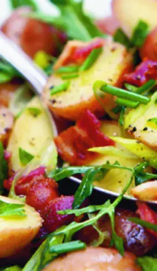 Bramborový salát chutná skvěle i bez majonézy. A to ať už ho zvolíte jako jednu z možných příloh při štědrovečerní hostině, nebo ho kdykoli během roku připravíte třeba ke grilovanému masu nebo řízku. Odlehčený bramborový salát chutná výborně na svačinu společně s čerstvým pečivem.