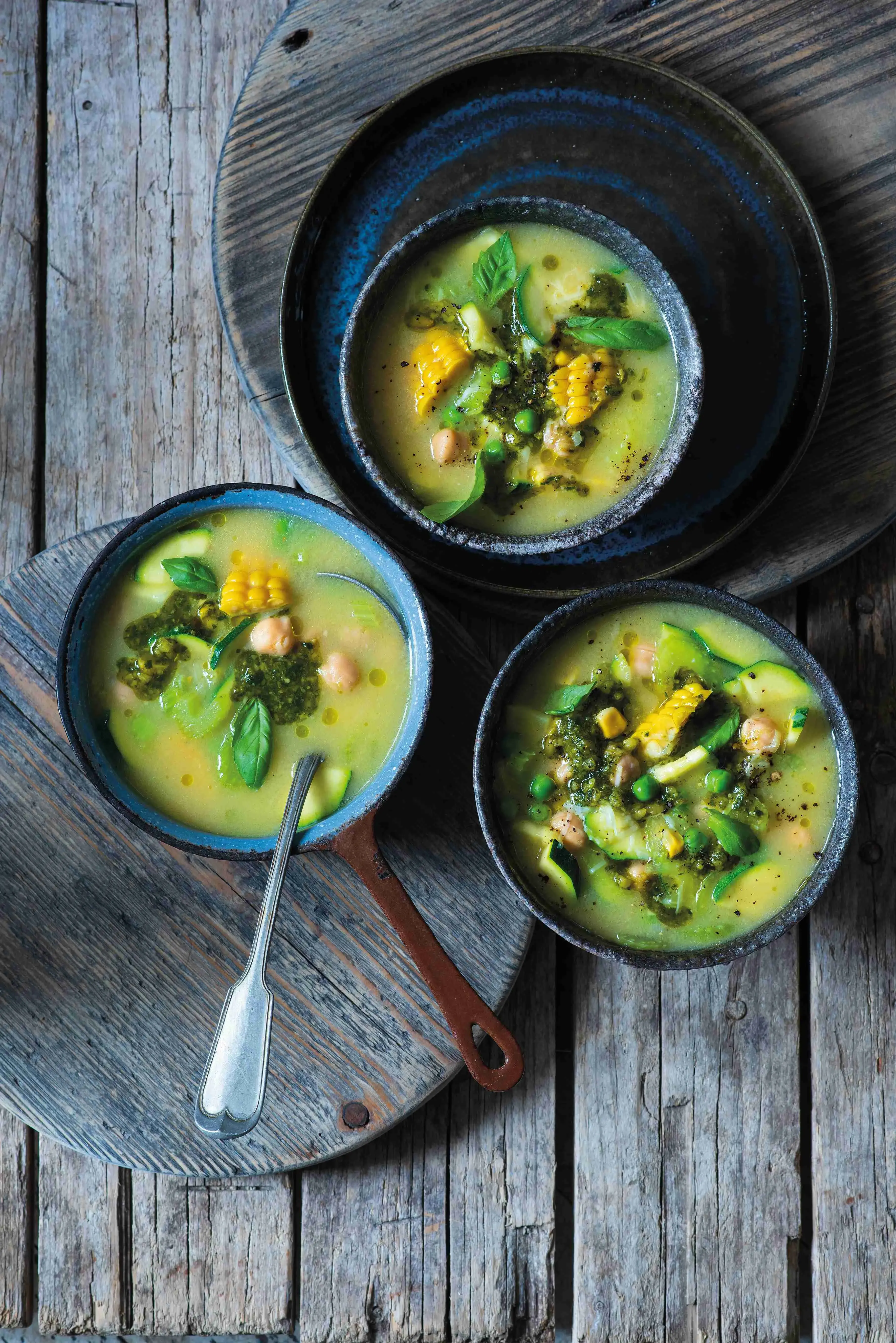 Lehký oběd, který pro větší vydatnost můžete doplnit bagetkou. Práci usnadní i kupované pesto.