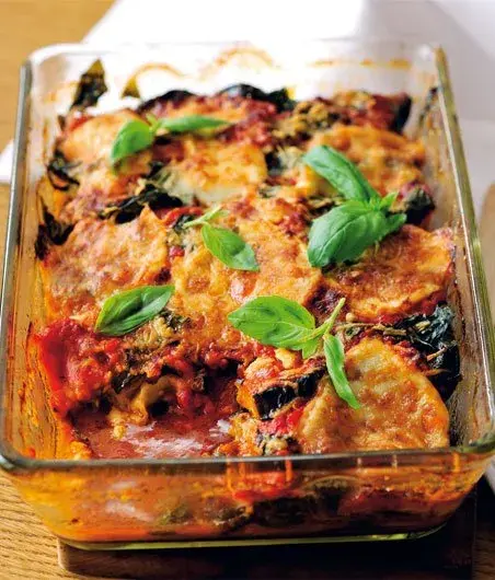 Recept se italsky jmenuje parmigiana di melanzane a chutná teplý i studený jako předkrm či lehké hlavní jídlo.