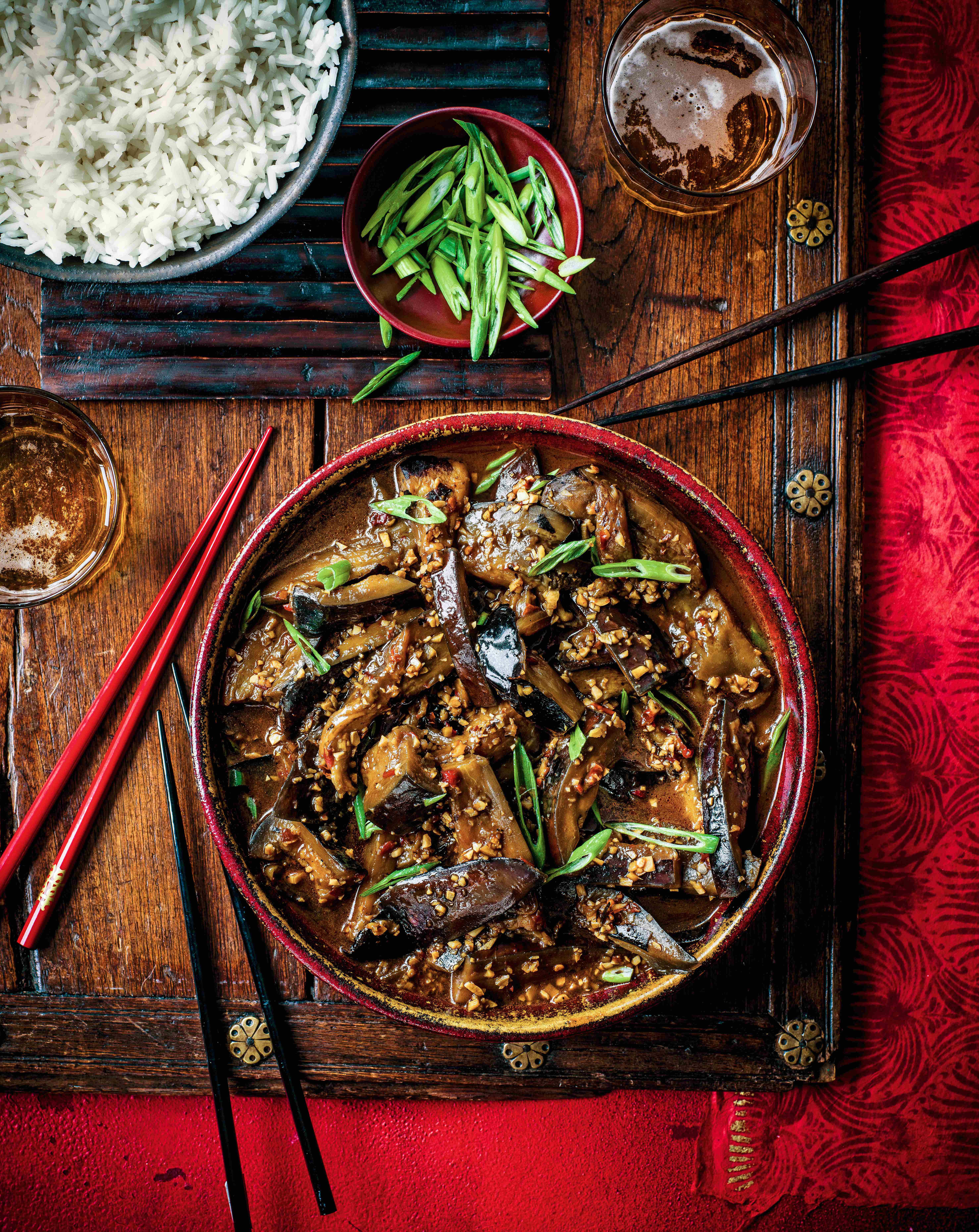 Tenhle lilek je ,s vůní ryb‘ spřízněný jen názvem. A přišel k tomu tak, že takovéto ochucení – jemně vyvážená sladká, kyselá a kořeněná chuť – se v sečuánské kuchyni původně používalo na ryby. Postupně se ale rozšířilo na jiné pokrmy a suroviny. Tohle jídlo nejlépe chutná připravené předem a následně ohřáté, proto- že se časem chuti lépe prolnou.