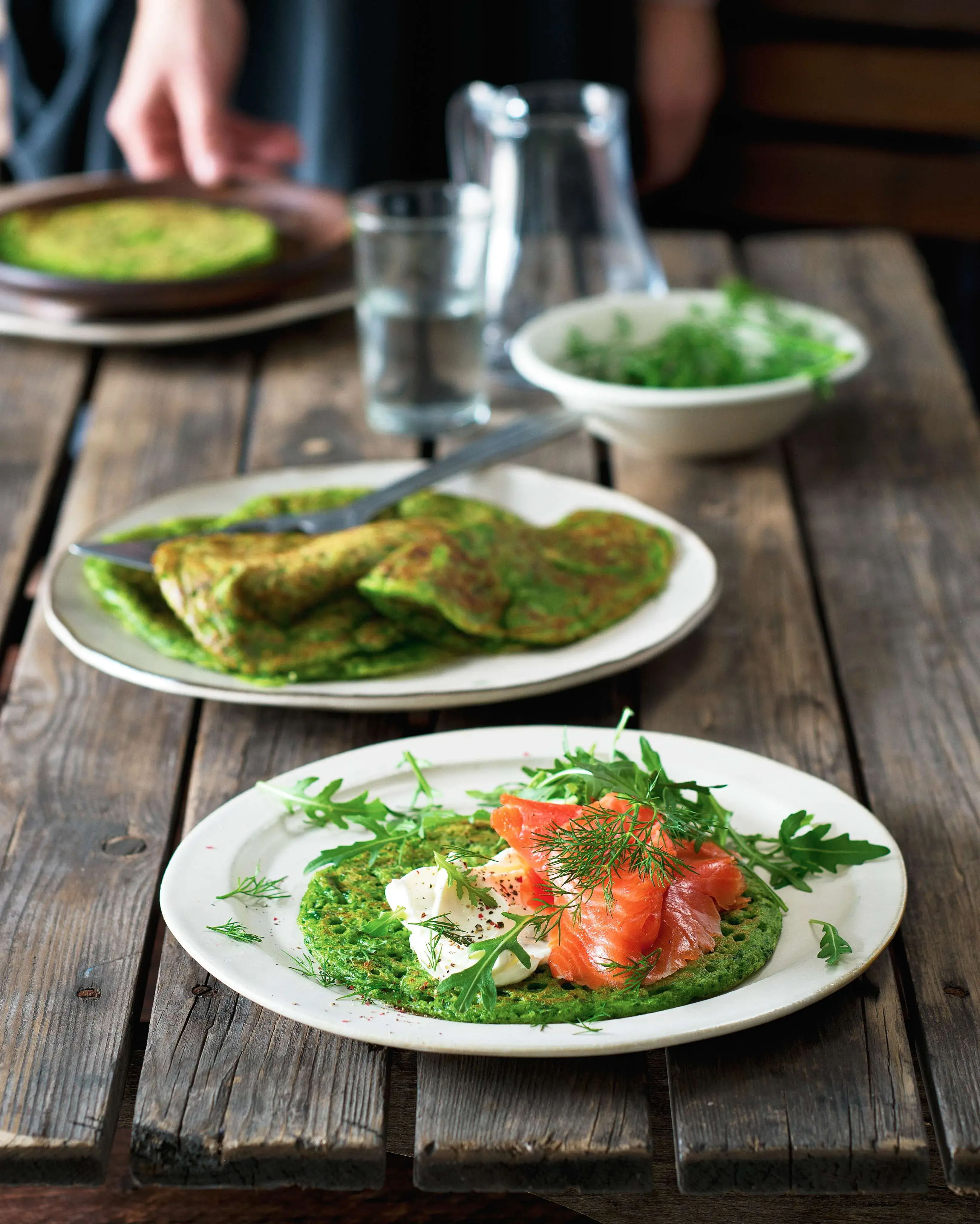 Zábavné zelené lívance jsou dobré horké, ale chutnají i zastudena, a tak se hodí i jako pohoštění na party nebo jídlo na druhý den.