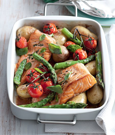 Chřest má rozmanité využití. Jeho sezona je poměrně krátká, tak s přípravou dlouho neotálejte. Pečený s lososem a rajčátky chutná báječně patří mezi ty recepty, které rozhodně stojí za to vyzkoušet.