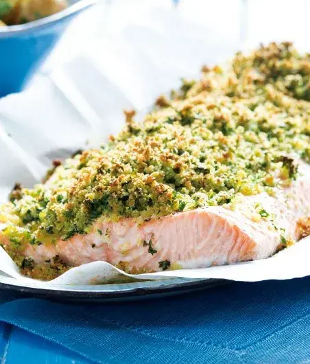 Losos s bylinkovou krustou překvapí i zatvrzelé konzervativce. Recept je malinko složitější, než klasický losos na pánvi, ale s o to překvapivějším výsledkem. Bylinková krusta na rybě udělá své – dodá masu chuť a udrží ho šťavnaté. Když do aromatické krusty přidáte dvě sardelová filátka a lžíci kaparů, bude ještě pikantnější.