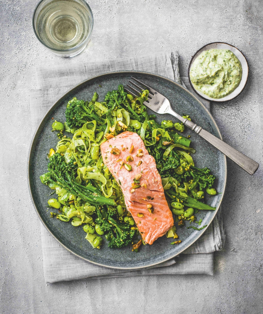 Grilovaný losos nás jen tak neomrzí, jeho maso je šťavnaté a doslova se rozsýpá. K dokonalosti mu v pohodě stačí sůl a pepř. Stále však vymýšlíme nové variace příloh, kterými ho doprovodit. Zelená zelenina a salsa z koriandru, petrželky a pistácií je trefou do černého!