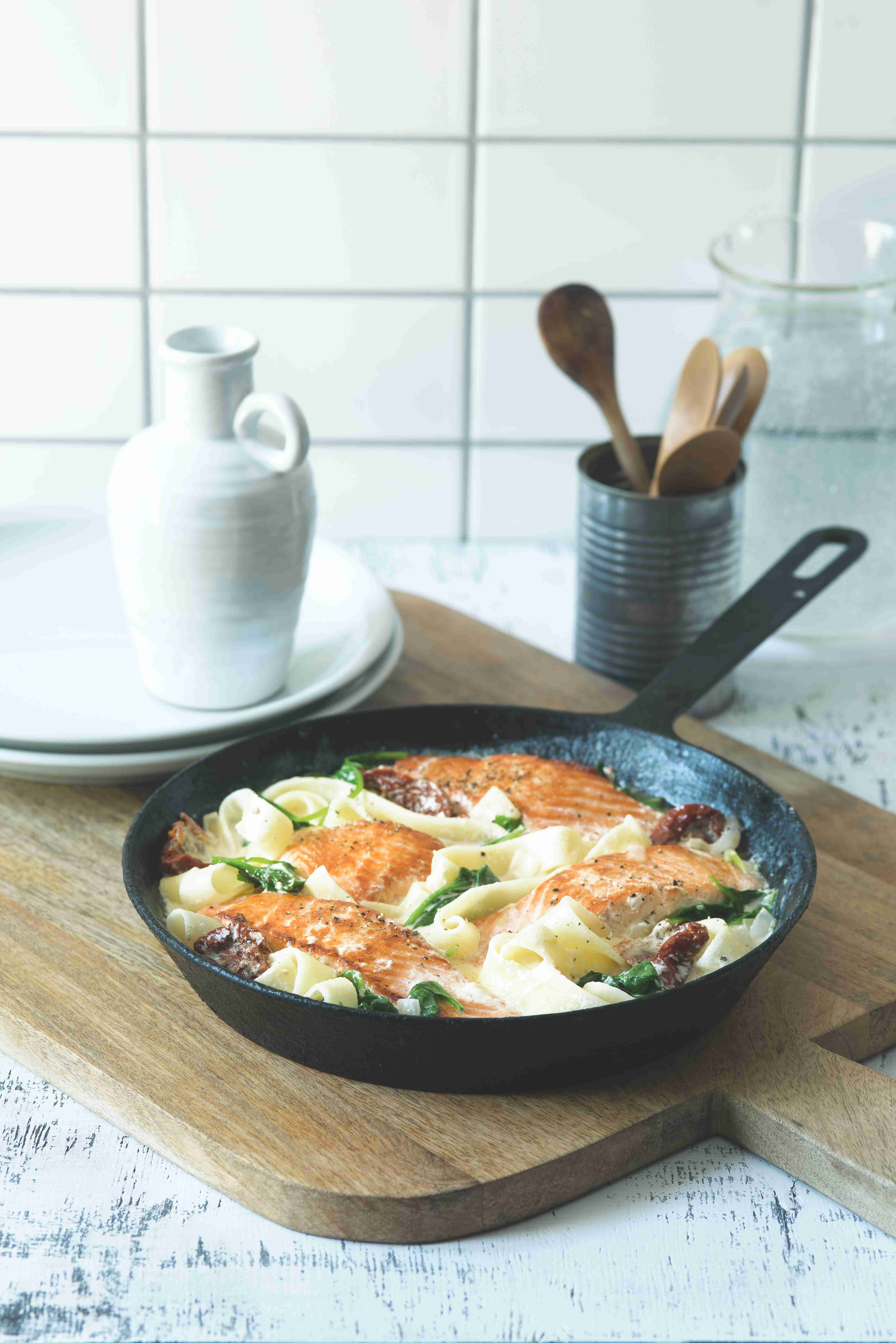 Losos a smetana? My říkáme ano! Losos se smetanovou omáčkou a těstovinami je kombinace, která chytne za srdce každého. Je to rychlé jídlo z jedné pánve, o které se podělí rovnou čtyři strávníci. Smetanové těstoviny s lososem jsou recept k nezaplacení.