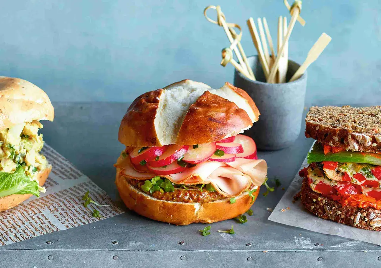 Když bylo v lednici vymeteno, poslední záchranu představoval chleba s hořčicí. Tohle je naše verze de luxe. Louhovaná bulka ovšem neobsahuje pouze hořčici, najdete v ní ještě krůtí šunku a rychle naložené ředkvičky.