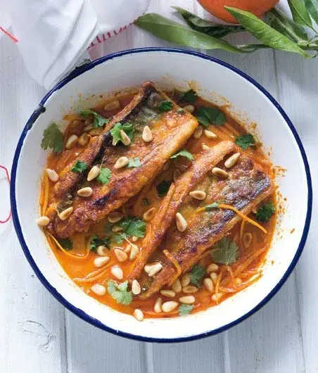Nakonec se pomeranče skvěle hodí k rybímu masu. Chutný a dietní pokrm vám zajistí recept na pstruha vařeného v páře společně s pomerančem a tymiánem. Kdo má raději exotické chutě, tomu doporučujeme kombinaci sladkovodní ryby a exotické omáčky z harissy, pomerančové kůry, pomerančové šťávy a olivového oleje. S pomerančem si rozumí i mořské ryby jako je třeba čerstvý losos.