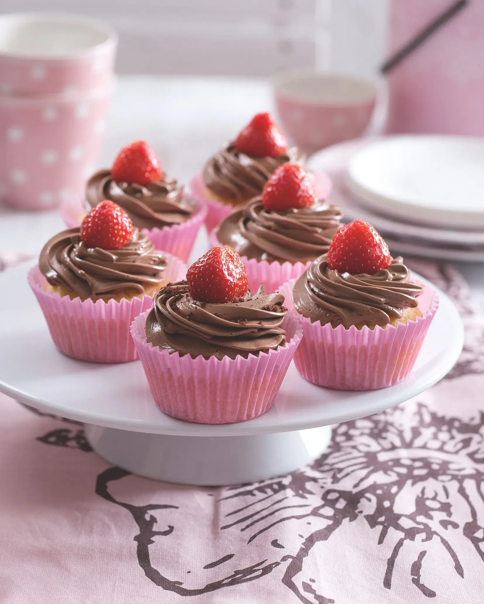 Není lepší kombinace, než jsou jahody s čokoládou. Snad jen když se tyto dvě chutě potkají na s nadýchaným mandlovým těstem v roztomilém dortíku. Mandlový muffin s efektní čepicí z čokoládového krému zdobí šťavnatá čerstvá jahoda. Mandlové cupcaky s čokoládovým krémem se skvěle hodí na večírky a oslavy.