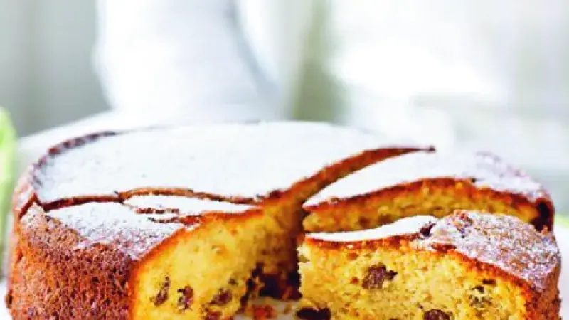 Typicky španělský recept – jogurt se hojně používá v maurské kuchyni a z rozinek a mandlí se peče v celém Španělsku. A sherry dodá koláči správný šmrnc.