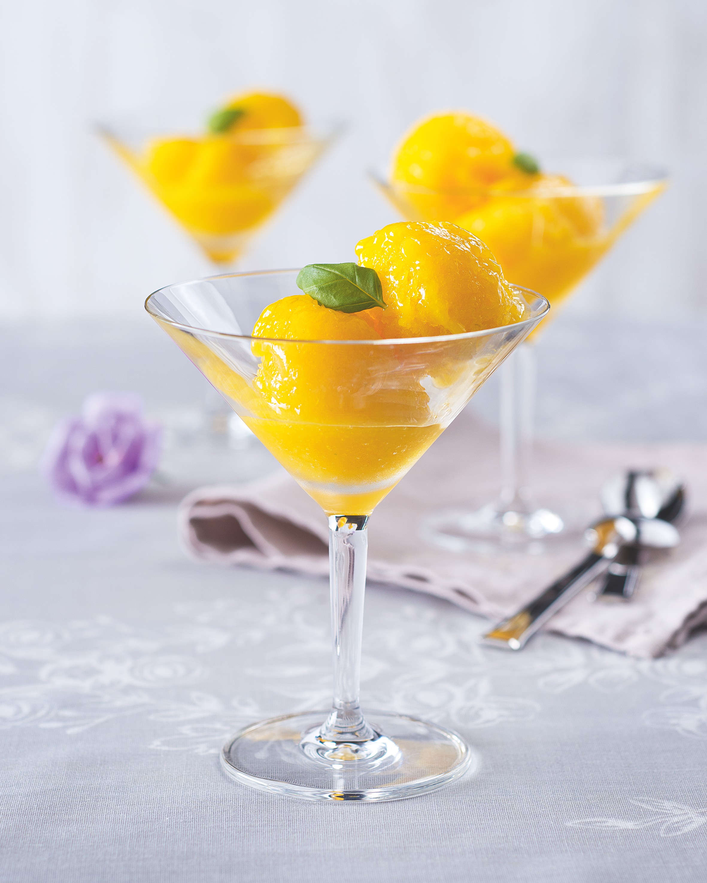 Jednoduchý sorbet podle receptu Lucky Kubrové stojí, ale i padá s chutí dobře uzrálého manga. Je lehký, svěží a nepříliš sladký. Jestli máte po večeři v plánu něco víc než se jen uvelebit na gauči před televizí, odolejte pokušení sníst všechen sorbet a zbytek schovejte v mrazáku na příště!