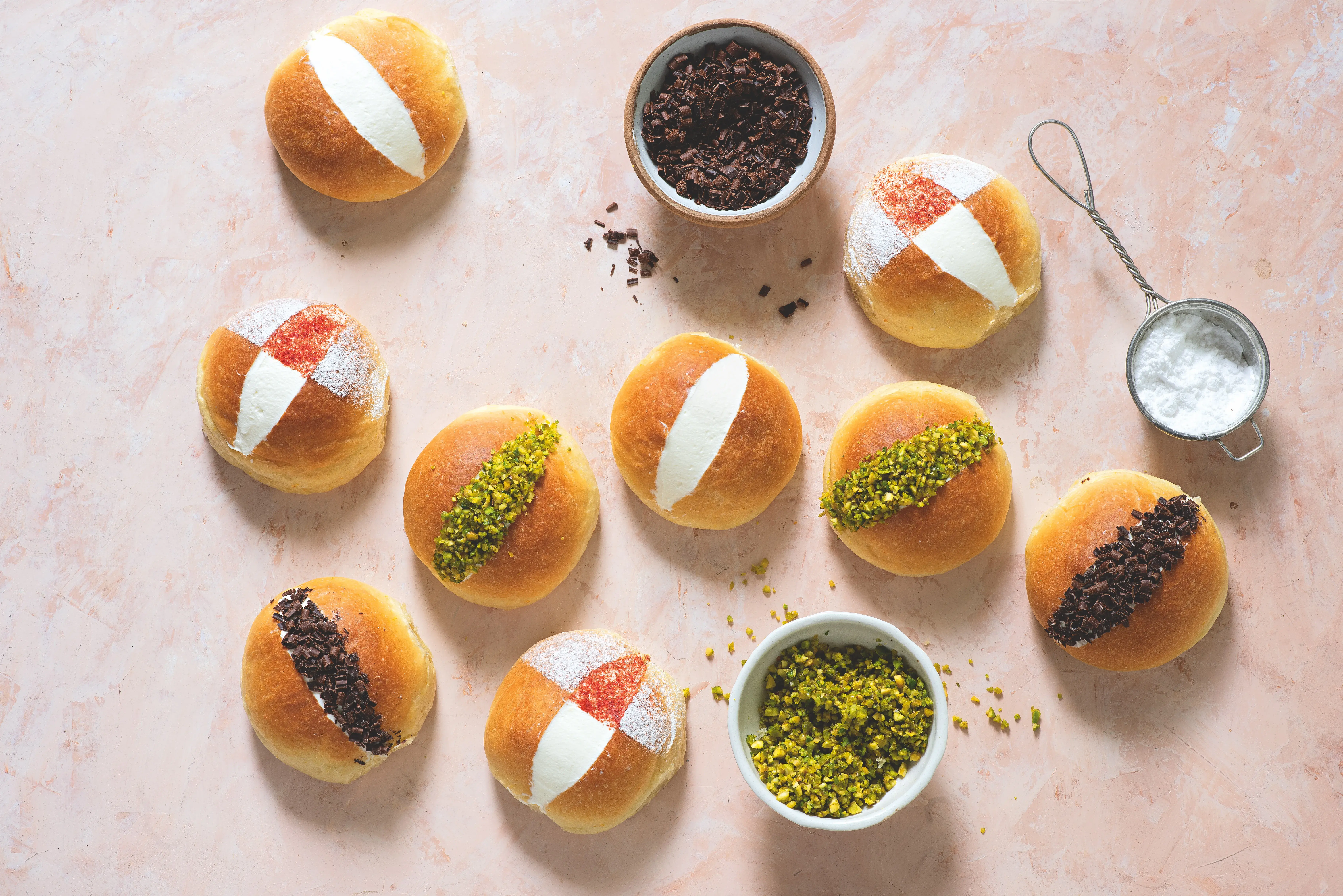Maritozzi – sladká a nadýchaná italská brioška plněná šlehačkou. Jak vidíte na titulní fotce, při zdobení se můžete opravdu vyřádit. My použili sekané pistácie, čokoládové hoblinky a prach z lyofilizovaného ovoce.