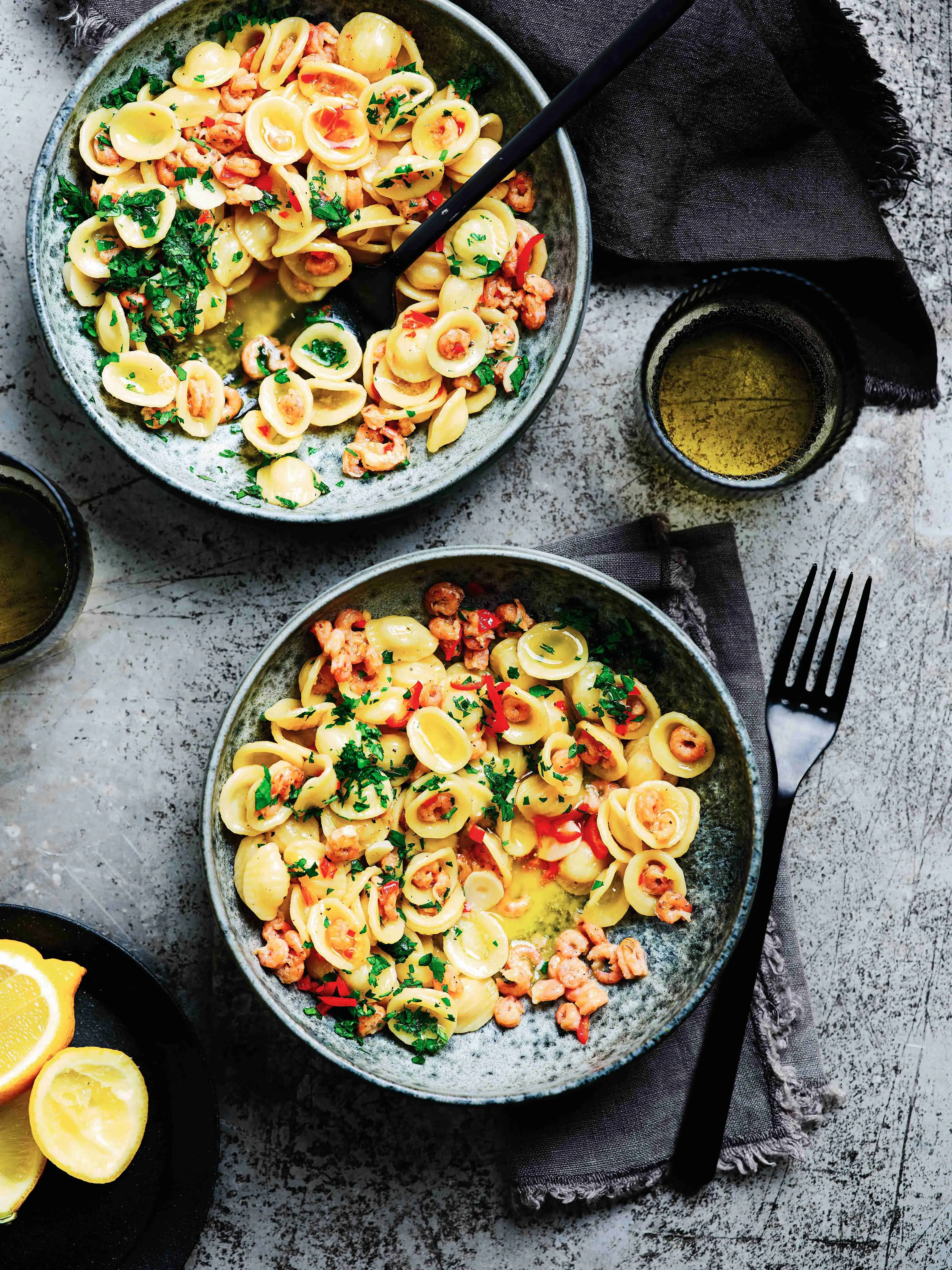 Dokonalost těstovin orecchiette – malých oušek s drsnějším povrchem – spočívá v tom, že dobře drží omáčku a nasají bohaté aroma z koření. Šafránová máslová omáčka tedy v jejich společnosti krásně vynikne.