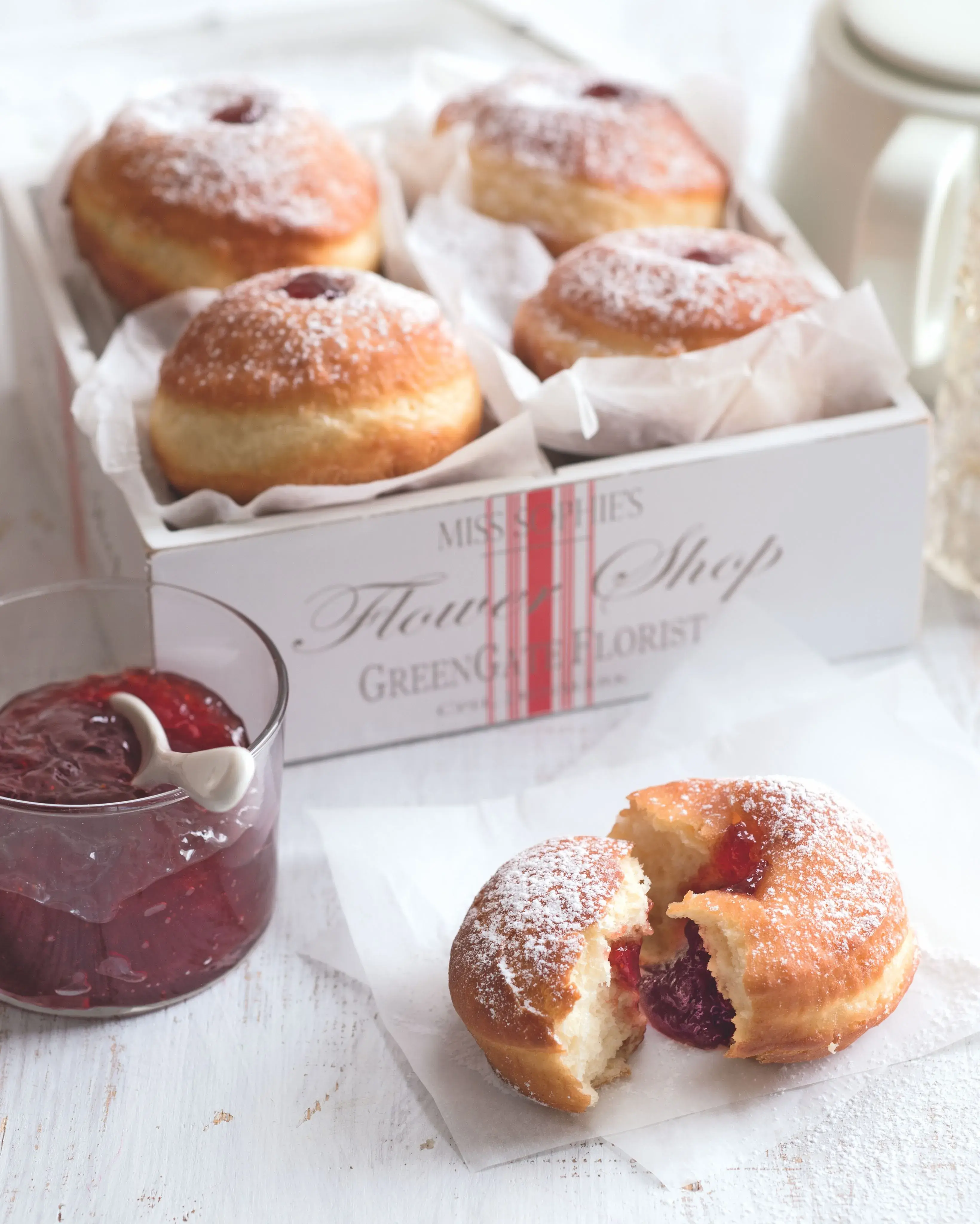 Připravit pravé masopustní koblihy není nic složitého. Pokud si na plnění netroufáte, smažte koblihy prázdné a džem do nich nastříkejte dodatečně. My jsme to na fotku udělali právě tak! Ze zbylého odkrojeného těsta vyválejte prameny, ty smotejte do uzlu a osmažte dozlatova. Vzniklé pletýnky bohatě pocukrujte nebo posypte skořicovým cukrem.