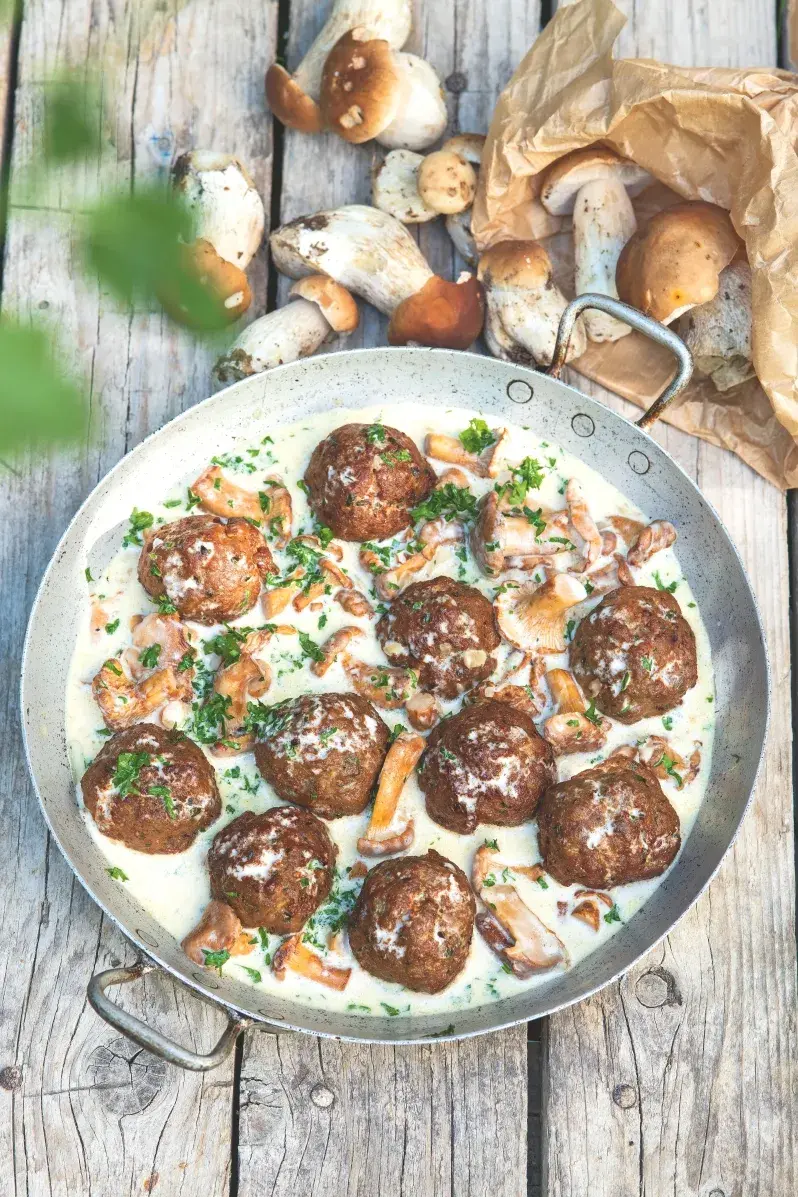 Spojení koulí z mletého telecího masa s liškovou omáčkou jsme si zamilovali na první sousto. Receptu upoutal i pozornost Pavla Berkyho, který ho pro vás natočil na video. Jeho verzi receptu najdete na jeho i našem Instagramu.
