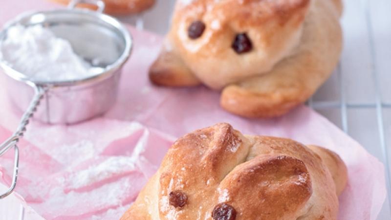 Když se naučíte základní kynuté těsto na mazanec, můžete z něj vykouzlit i další sladké pečivo. Třeba drobné velikonoční zajíčky.