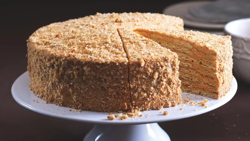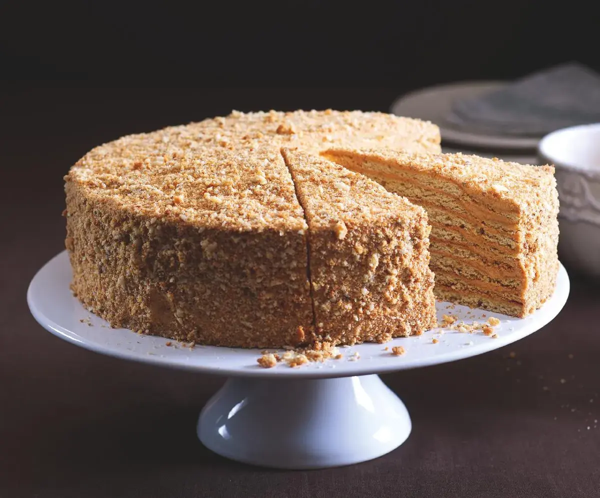 Originální recept na medovník se po dlouhých peripetiích podařilo získat redaktorce Šárce Hamanové od Gruzínky Nanuli Dérové. Vypadá komplikovaně, ale budete překvapeni, jak je snadný. Nejlíp chutná trochu odleželý, proto ho po sestavení nechte pár hodin odpočívat na chladném místě.