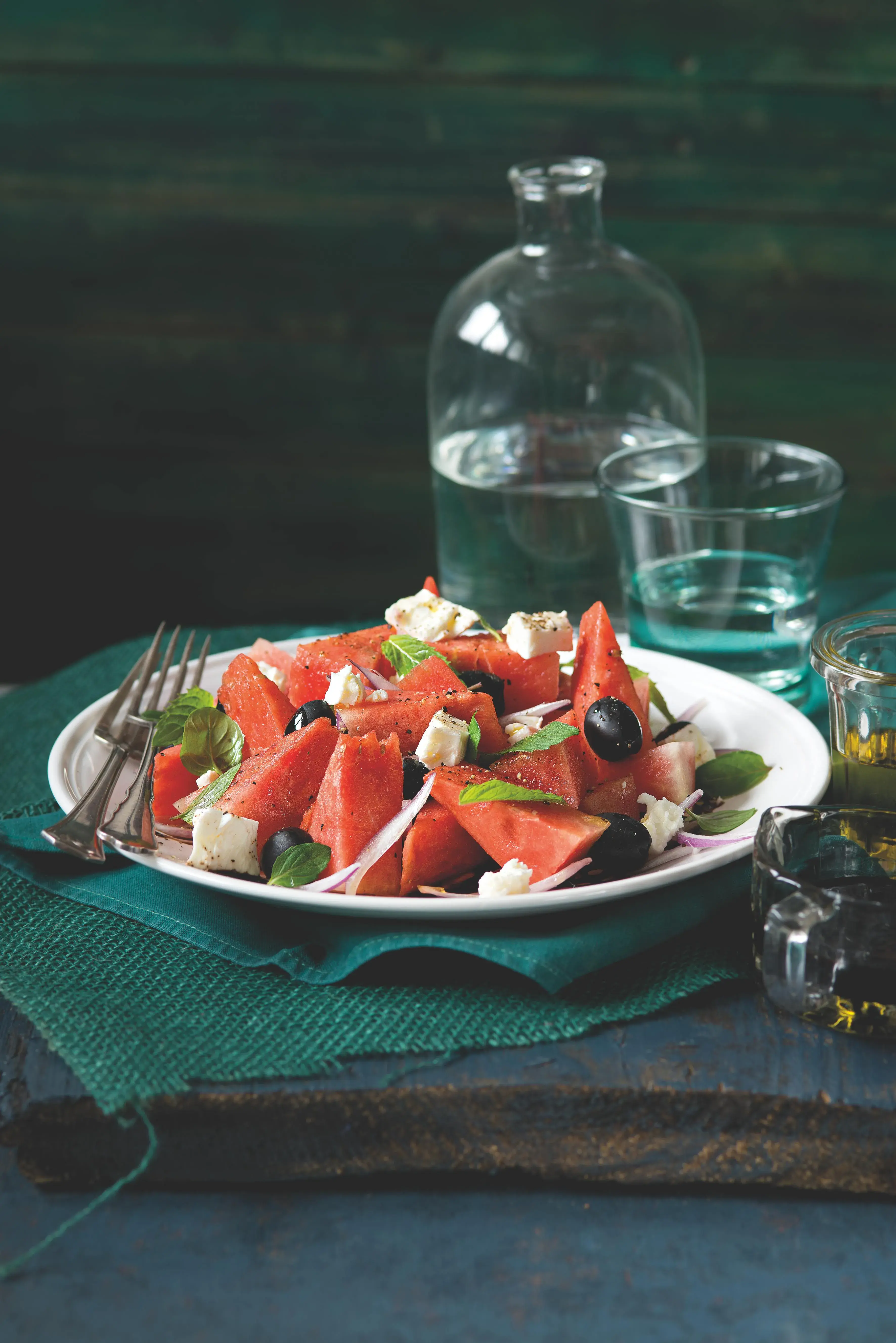 Sladký meloun se slanou fetou a olivami vytváří svěží a harmonickou chuťovou kompozici. Perfektní letní salát, který vtiskne klasickému vodnímu melounu opět jiný rozměr.