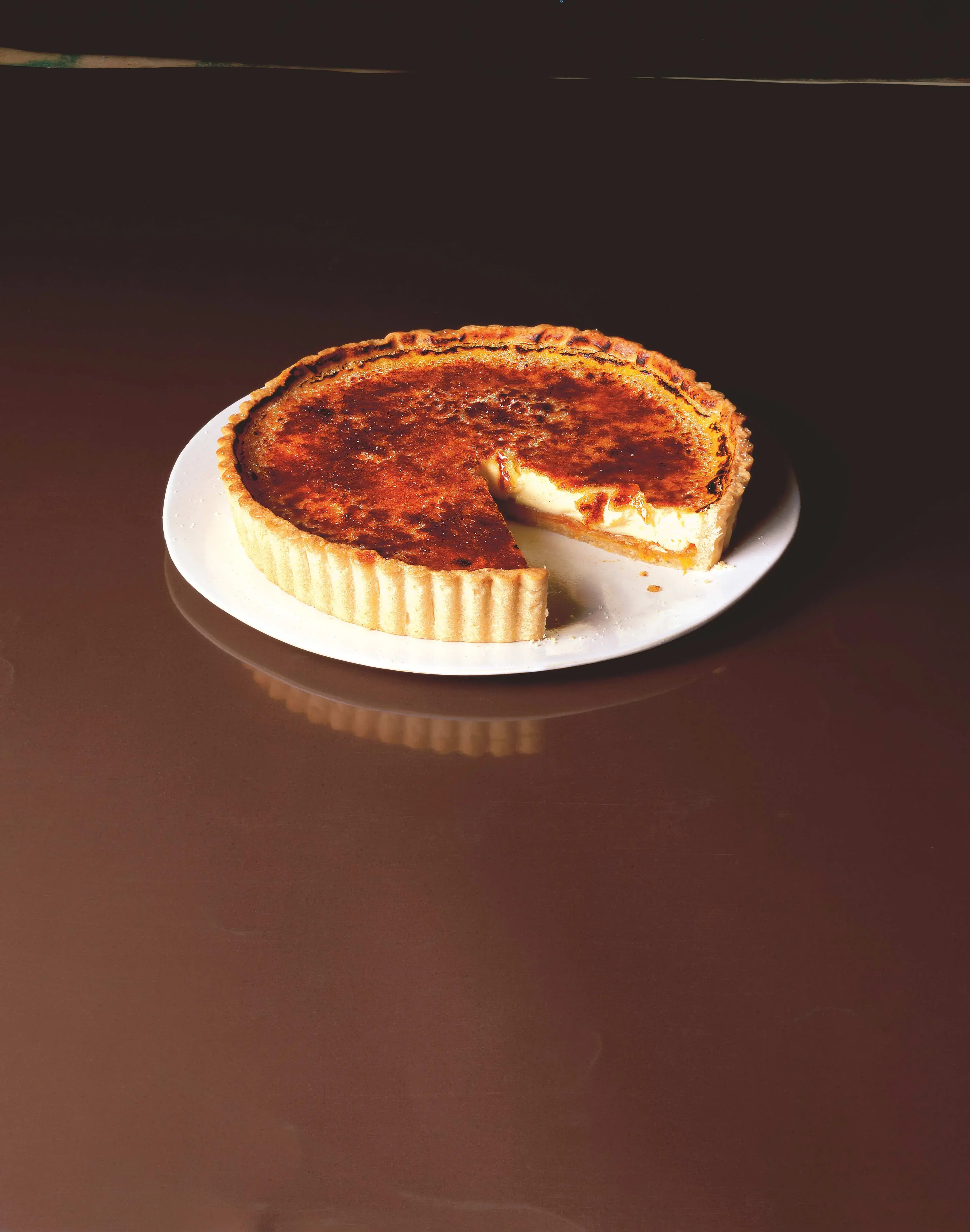 Křehké těsto s mandlemi, jemná náplň se šťavnatými meruňkami a navrch korunka ze zkaramelizovaného cukru – variace na ‚zapečený krém‘ je skutečným dezertem snů!