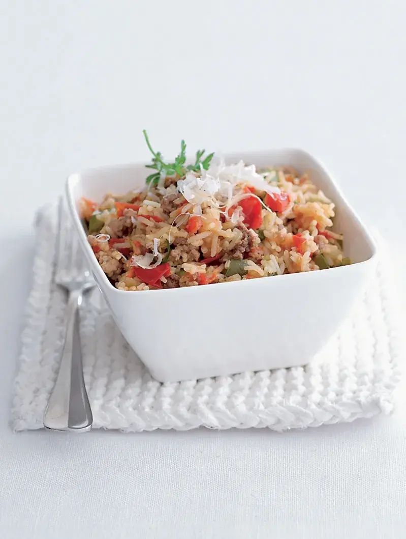 Varianta českého masového rizota, tentokrát s lehkým nádechem Mexika. Žádné složitosti ani neznámé suroviny, vše v rytmu poctivého domácí kuchyně s lehce pikantní chutí čerstvé chilli papričky. A strouhaný sýr nesmí chybět.