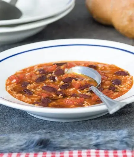 Pikantní mexický hrnec můžete udělat i hustší jako rizoto. Stačí, když do masového základu přidáte jen málo vody.