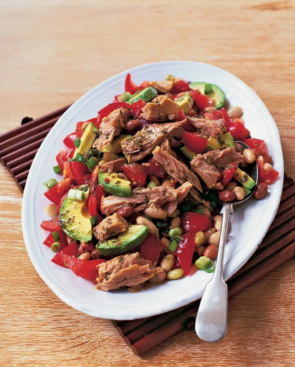 Jestli to radši horké, prohřejte fazole v rendlíku s rajčaty a chilli papričkou. Pak všechno smíchejte podle návodu. Mexický salát s tuňákem a fazolemi má s dietními saláty jen málo společného. Je to syté jídlo, které ocení i opravdoví jedlíci.