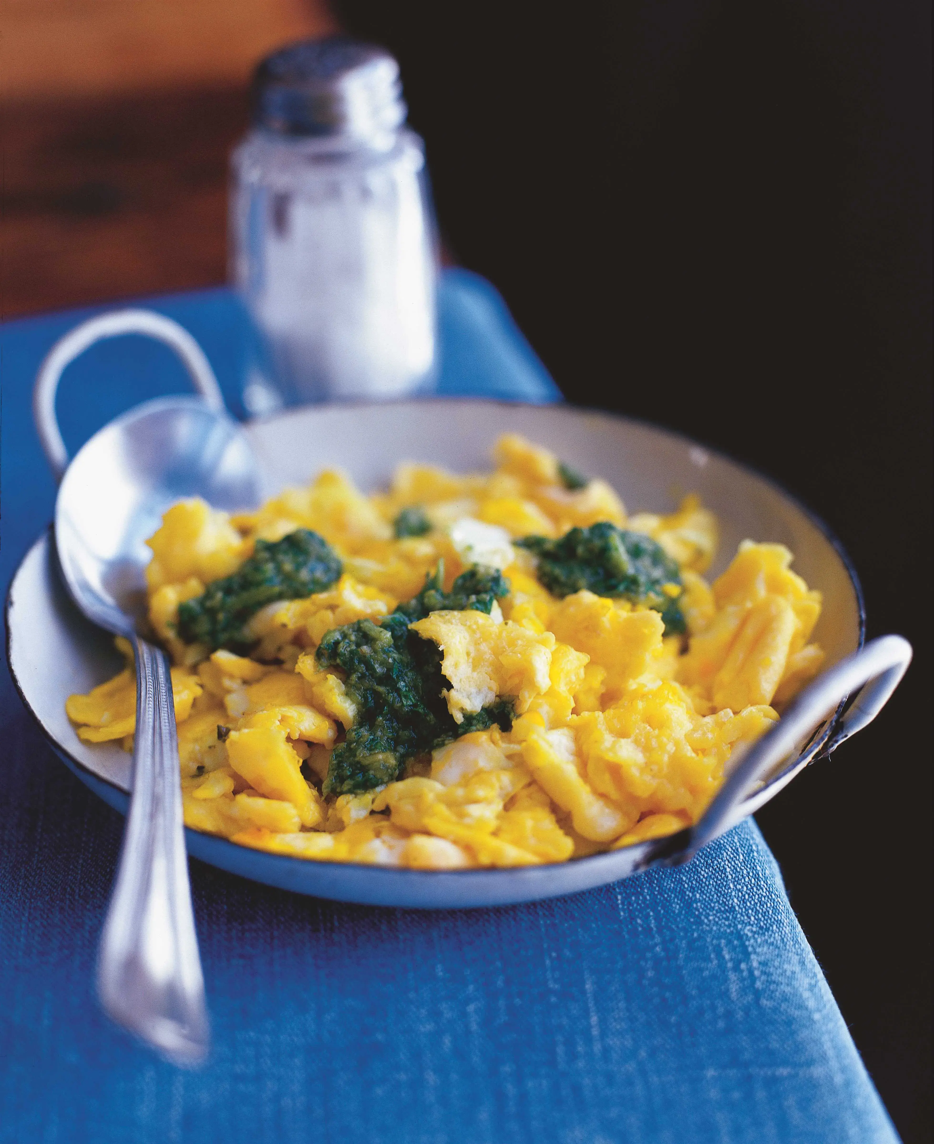 Tak trochu jiná míchaná vejce... A přitom stačí tak málo – přidejte bazalkové pesto a uvidíte jaké zázraky s vajíčky udělají.
