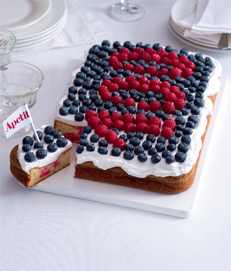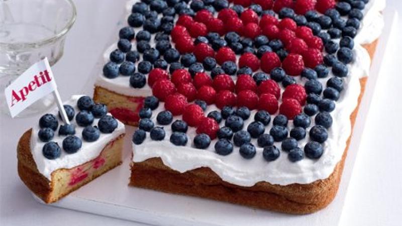 3 Předehřejte troubu na 180 °C. Část těsta vylijte na plech o rozměrech 30 x 40 cm, zbývající těsto obarvěte malinovou barvou. Obarvené těsto vlijte na neobarvené a vidličkou vytvořte barevné mramorování. Vložte do trouby a pečte, dokud špejle zapíchnutá do středu nevyjde suchá. Po upečení nechte těsto lehce zchladnout, propíchejte ho špejlí a přelijte alkoholem.