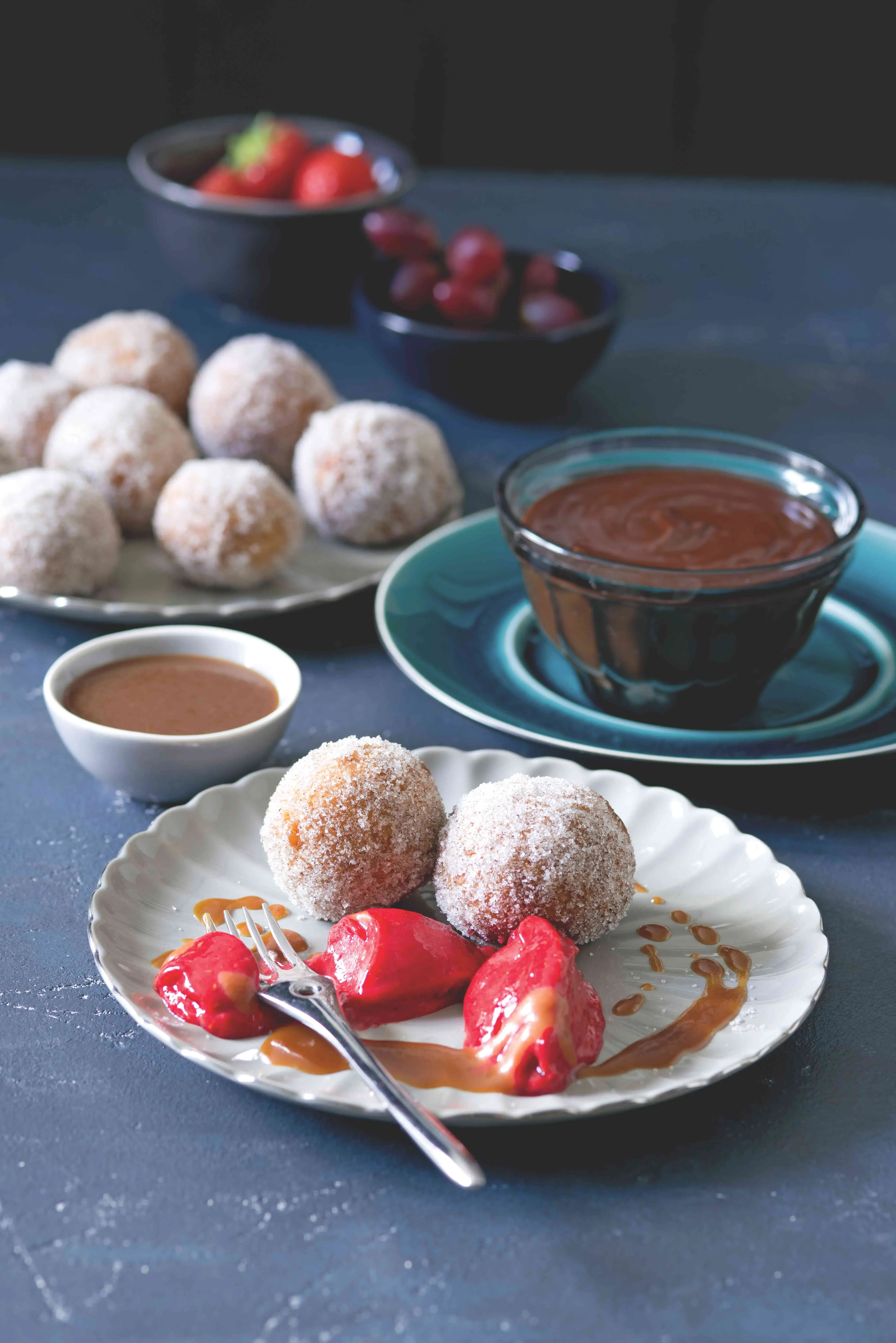 Kuličky těsta postupně pomalu smažte ve vyšší vrstvě oleje dozlatova, během smažení obracejte. První koblížky obětujte nastavení správné teplo- ty oleje a intenzitě smažení, aby uvnitř nebyly syrové. Vyjměte děrovanou lžící a nechte okapat na papírové utěrce. Potom obalte v ochuceném cukru.