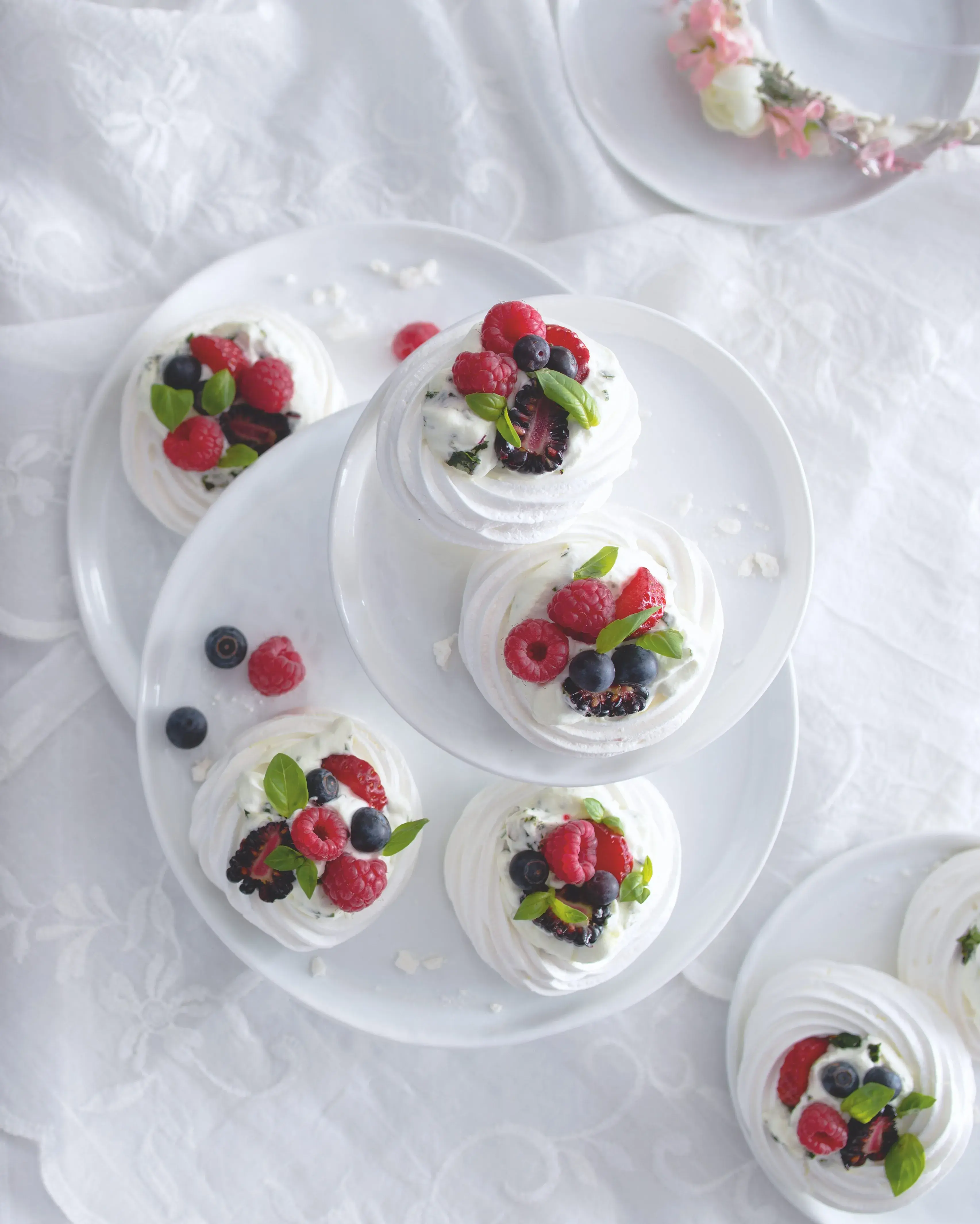 Křehká sladká pusinka s nadýchanou šlehačkou a drobným ovocem učaruje každému! Minipavlova má šmrnc a dodá glanc každému sladkému baru – ať už na svatbách nebo narozeninových oslavách. Pavlova je pojem, kterého ale není třeba se bát. Recept je podobně snadný, jako třeba na sněhové pusinky a proto si ho snadno můžete připravit třeba i k odpolední kávě.