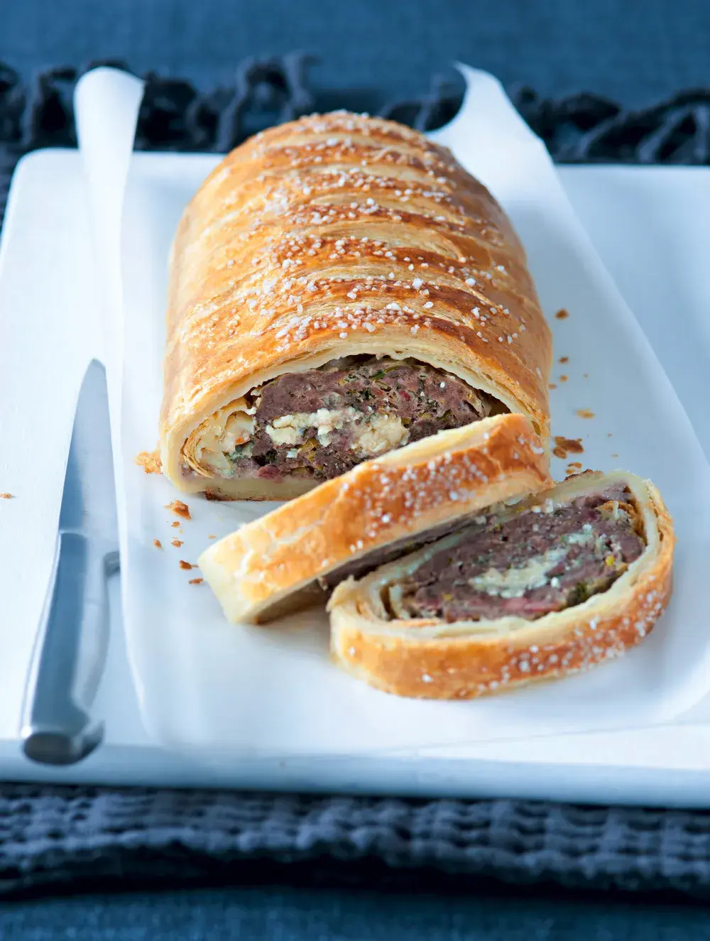 Pórek a sýr s modrou plísní se k sobě dokonale hodí. V redakci se po závinu jen zaprášilo! Mleté hovězí maso zapečené v těstě je jakási slavnostnější sekaná, kterou si ovšem můžete nakrájet s sebou na piknik nebo druhý den do práce. Masový závin výborně totiž chutná i studený.