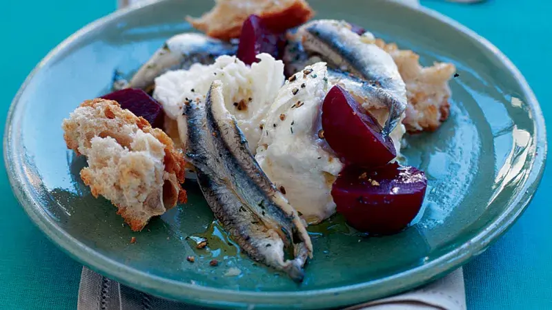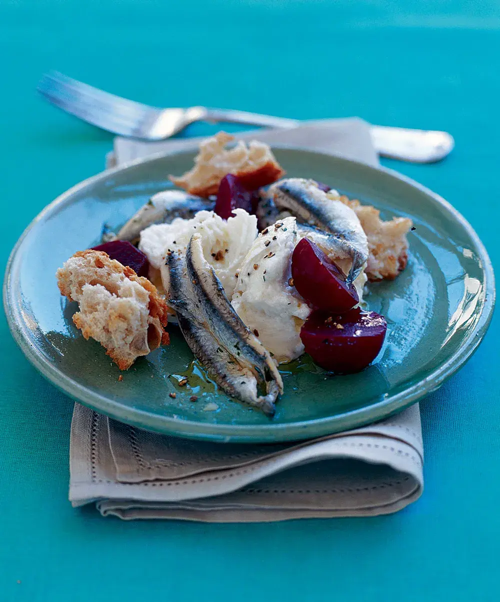 Kombinace mozzarelly a červené řepy sice zní trochu bizarně, ale je fantastická! Když přidáte slané ančovičky a olivový olej, máte jednoduchý, a přitom dokonale stylový předkrm.