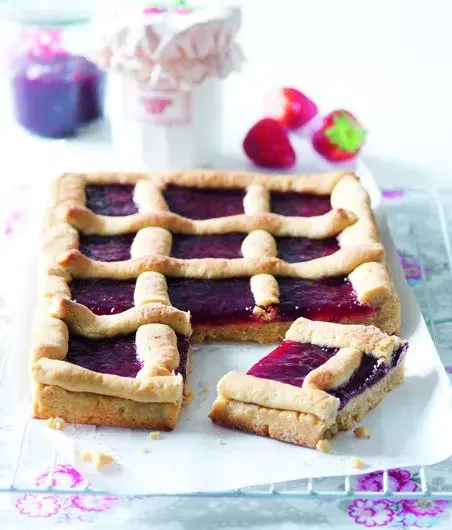 Máslové těsto se semolinovou mouku je extrakřehké. Na potření použijte domácí či méně tuhý jahodový džem bez konzervantů.