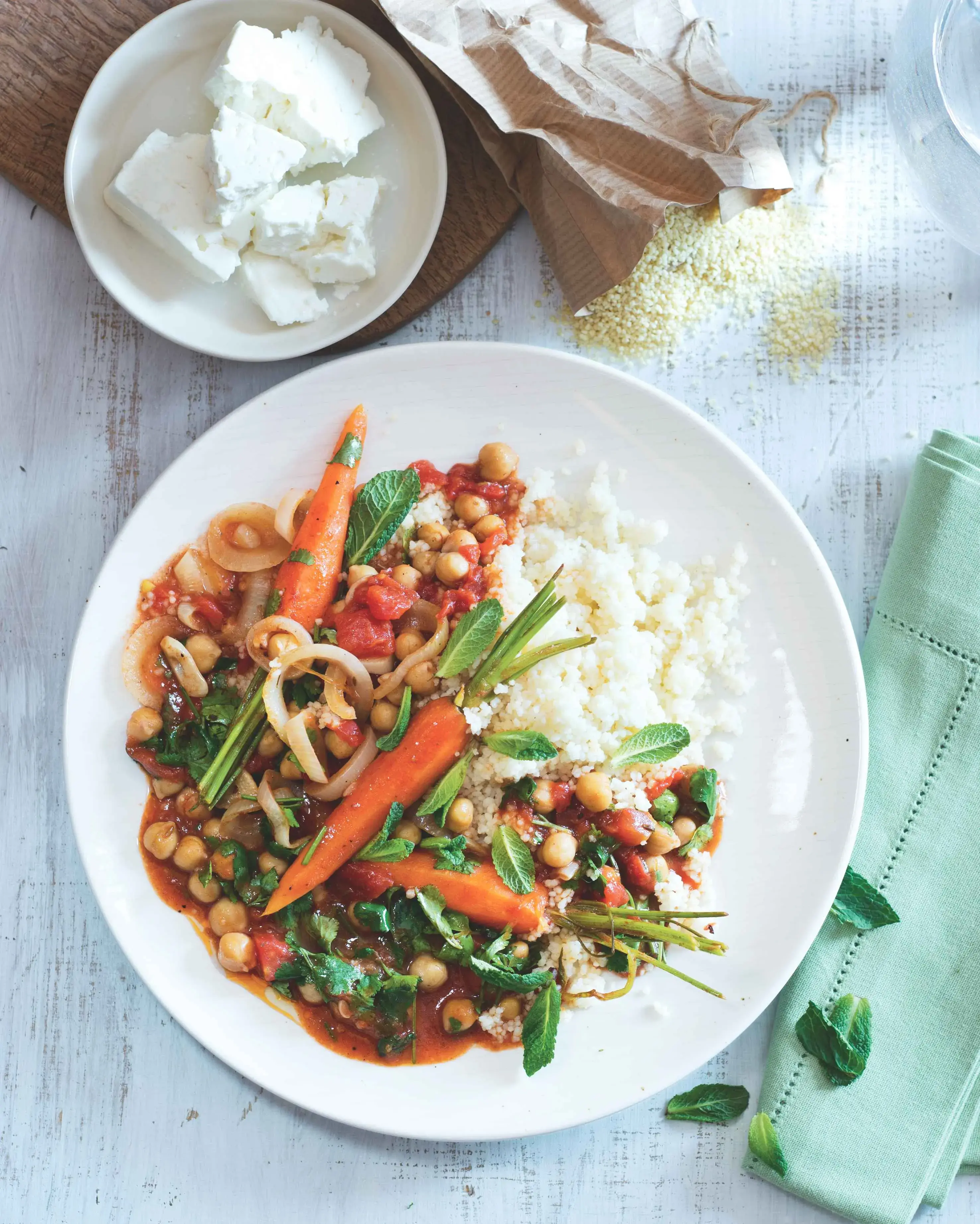 Jarní zelenina v aromatické úpravě – mrkev s cizrnou po marocku je pikantní bezmasé jídlo, ideální jako rychlá večeře nebo lehký oběd.