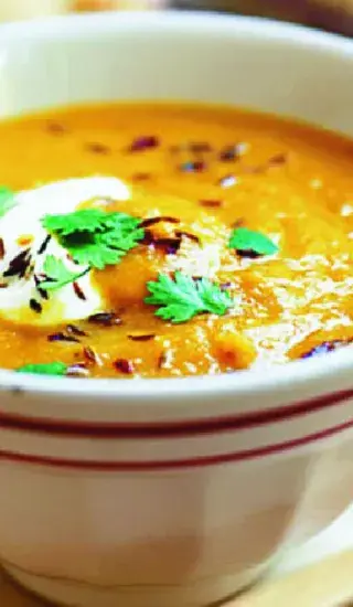 Mrkvová krémová polévka může mít řadu podob. Na jaře zkuste tuhle variantu s pestem z medvědího česneku.