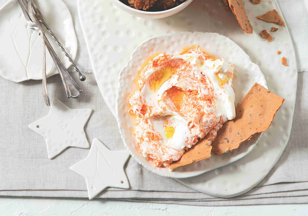 Svěží pomazánku jsme doplnili křupavými plackami se semínky, jaké jsou k dostání v obchodech se zdravou výživou, nabízí je také pekárna Dvorník. Skvělým doplňkem ovšem budou i klínky zeleniny, krekry nebo tyčinky.