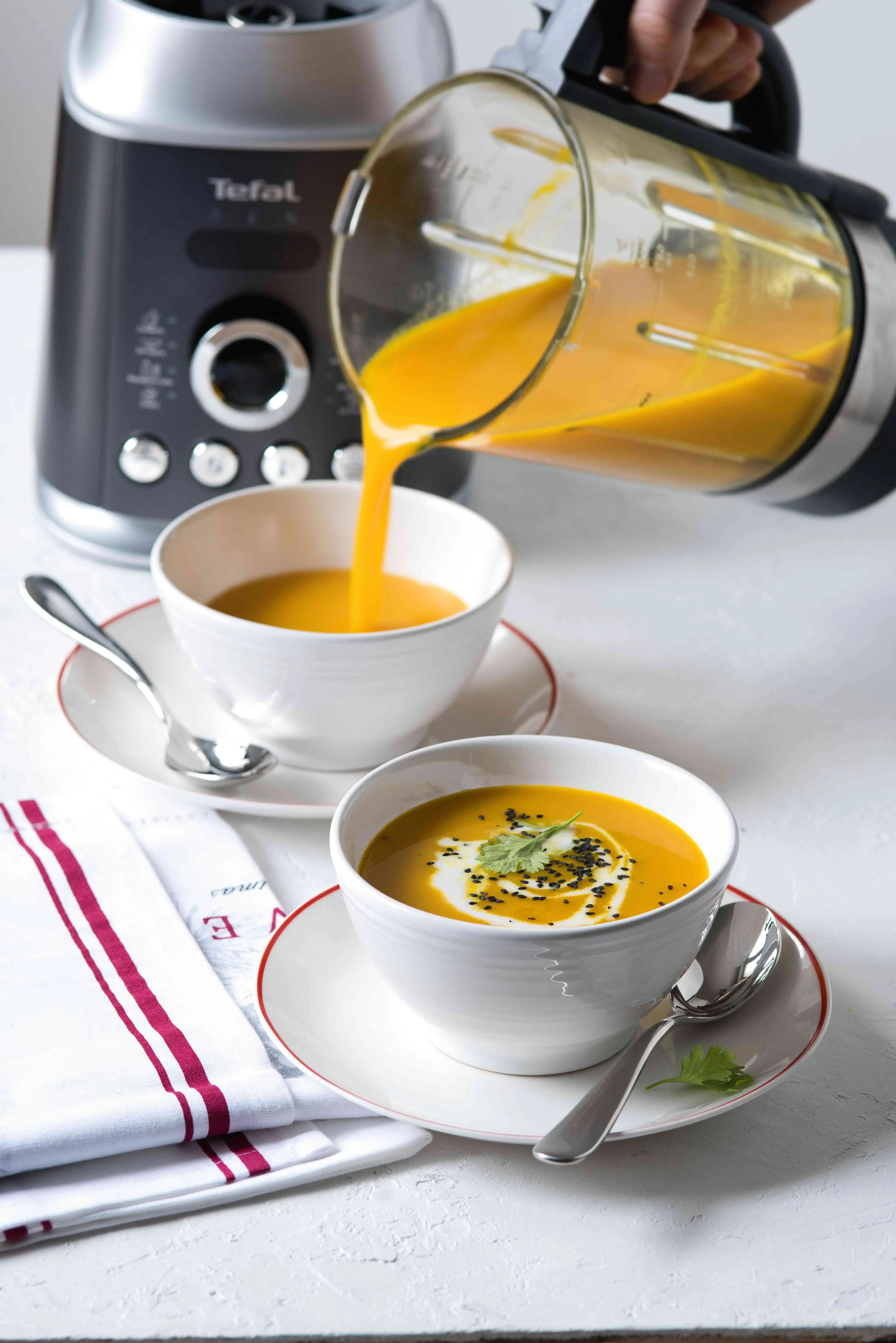 Polévka, kterou v zimních měsících opravdu oceníte – zahřeje, uzdraví a potěší oči. Vysokorychlostní mixér Tefal Ultrablend Cook ji navíc připraví téměř sám! Stačí, když nakrájíte suroviny a pak už se můžete v klidu věnovat prostírání stolu k večeři.