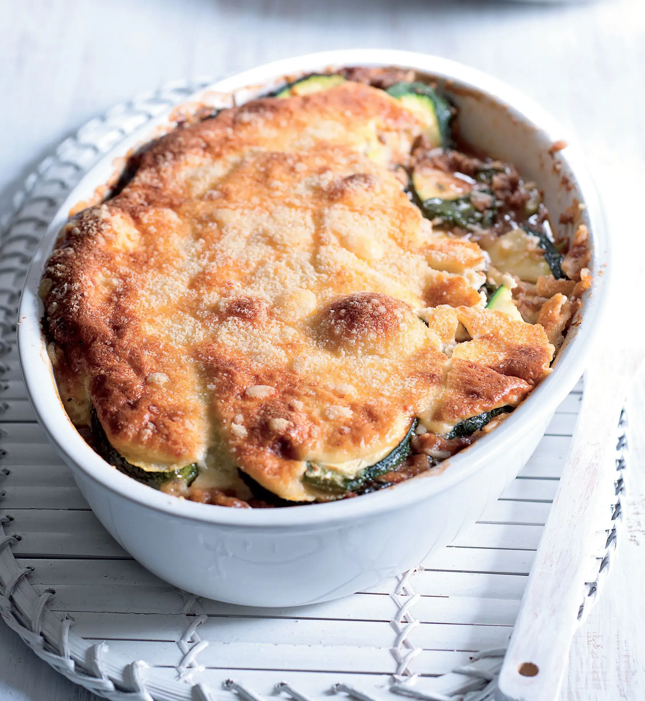 Díky skořici a oreganu je musaka s cuketou hodně aromatická. Pokud se vám to zdá příliš, množství koření si upravte podle své chuti. Každopádně jednoduchá musaka z mletého masa, cukety a rýže stojí za vyzkoušení. Je to snadný recept na rychlé jídlo z jednoho pekáče, ve kterém máte zároveň i přílohu. Takže stačí hotovou musaku postavit do prostřed stolu, ať si každý nabere podle svého.