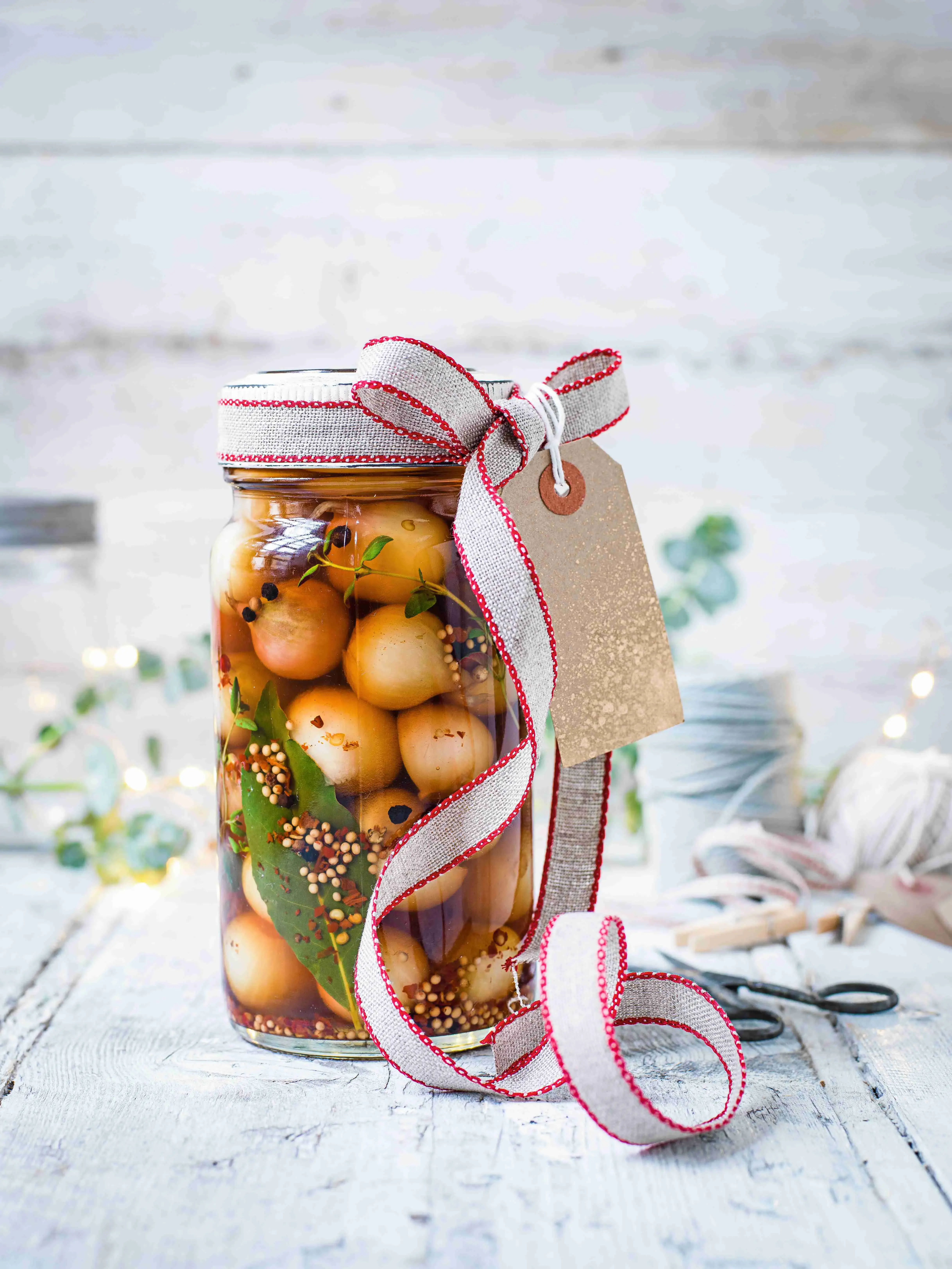 Nakládané cibulky jsou skvělé ke všem paštikám a obloženým mísám. Nechte je naložené jen chvíli, a budou pěkně křupavé, udělejte je už na začátku prosince, a budou krásně křehké.